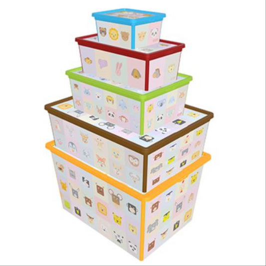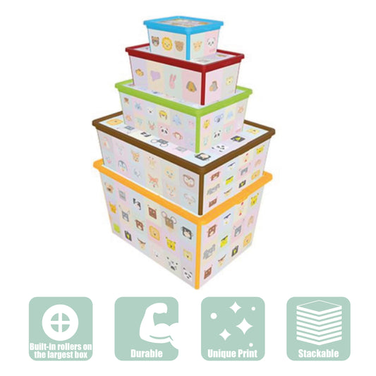 Maqio Decorative IML Print Coloured Animal Motif Set of 5 BoxesVendor: MaqioGet ready to rock your storage game with these super-cool Maqio boxes! Perfect for busy mums who love keeping things tidy while adding a splash of fun to their kids' rooms. This set of 5 nesting boxes features adorable animal prints that'll make organising...