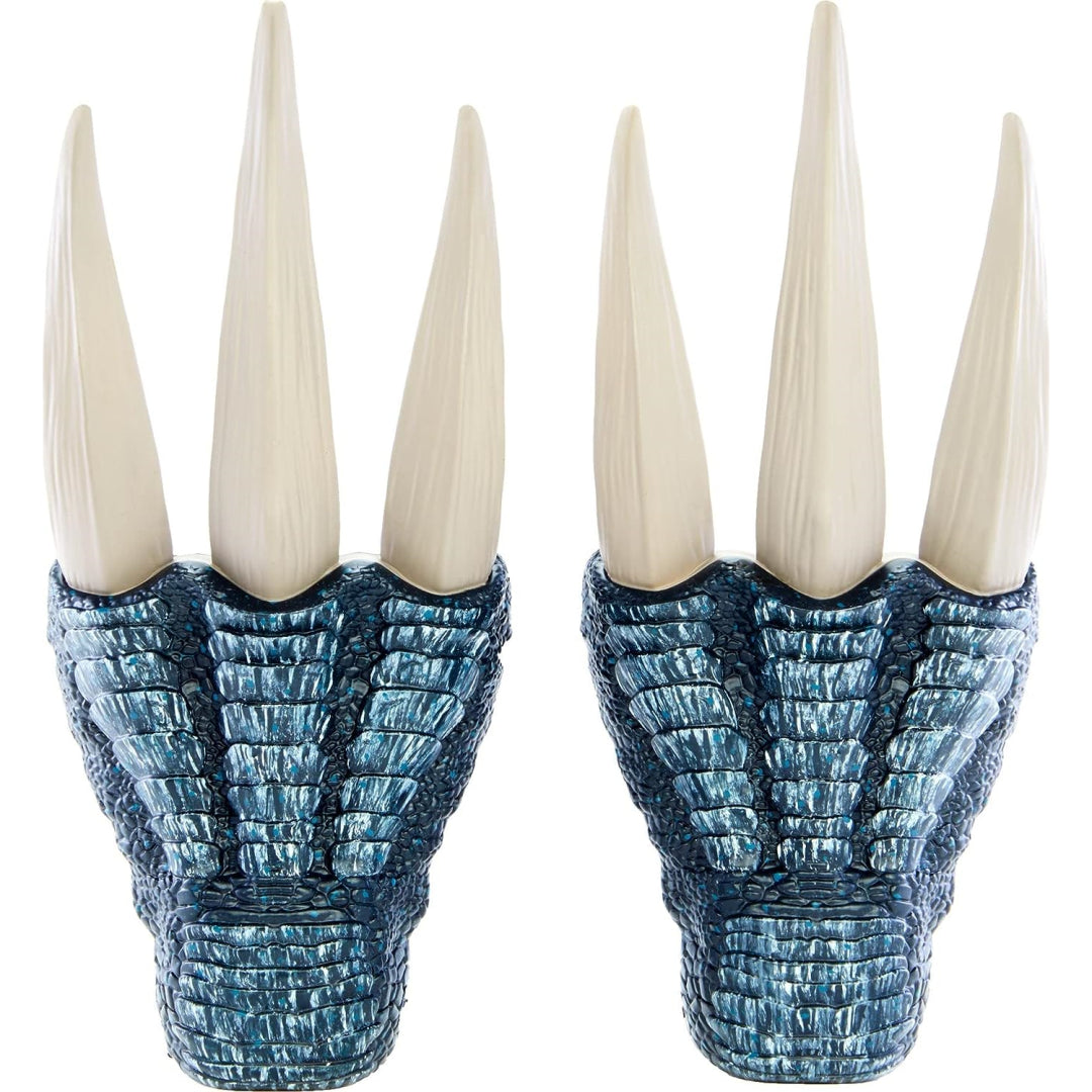 Get ready for Jurassic World Dominion's exhilarating action and adventure! Kids may dress up like the vicious dinosaur Therizinosaurus from the movie by using these costume dinosaur claws. The lifelike claws are made of soft material and are ready for war; they are ideal for swiping and slicing while recreating intense action scenarios and situations. For fun roleplaying in movies, the almost 10 inch long claws have an elastic band inside so they fit snuggly on a child's hand. The realistic texture and design make play feel authentic! For more costume play, pair with Jurassic World dinosaur masks. Masks are available only while supplies last.