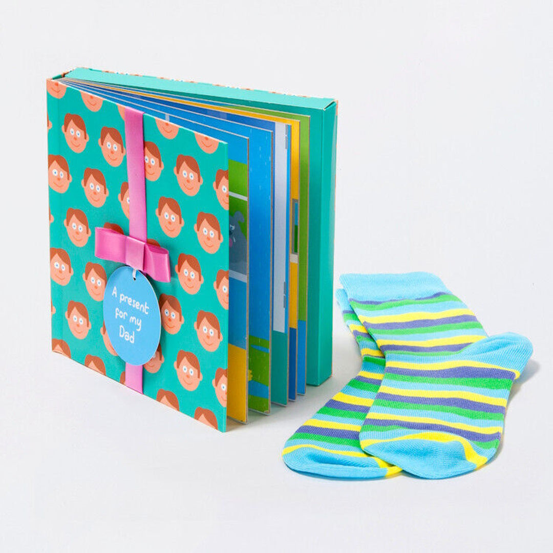 Make Dad's day extra special with this adorable gift set from Maqio! This charming 12-page board book takes little ones on a giggle-filled journey through all the possible presents they could give Dad - with a surprise twist at the end. But wait, there's more! Tucked away in a lovely gift box at the back of the book is a proper pair of smart socks (UK size 7-11) that'll keep Dad's toes cosy.