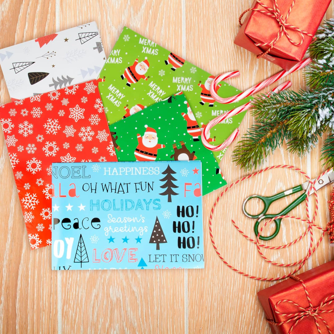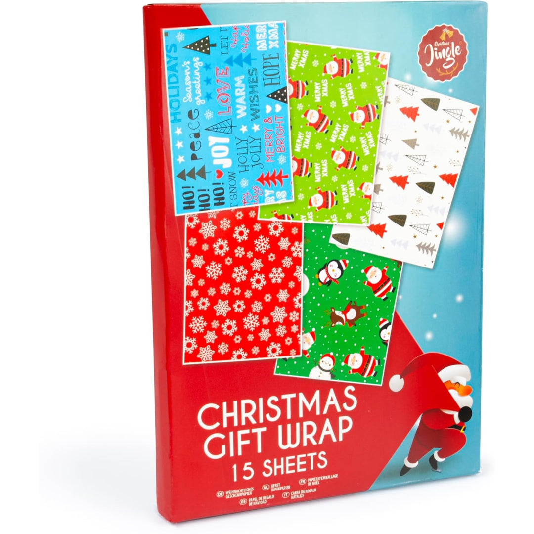 Fifteen sheets of festive wrapping fun from Abeec that'll take you straight through the present pile without breaking the bank. This Christmas wrapping paper pack gives you five cheerful designs—Santa, snowflakes, Christmas trees, penguins, and holiday lettering—with three sheets of each, so you've got plenty to cover everything from stocking fillers to that awkwardly shaped robot your little one's been asking for since July.