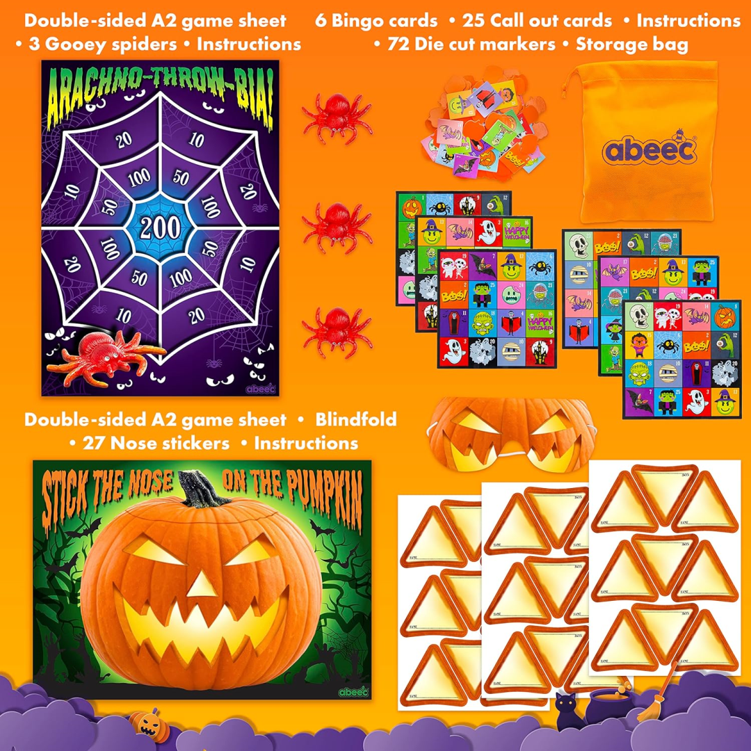 Bring extra fun to Halloween with this set of three exciting kids’ games, perfect for parties, family nights, or playdates. With options for both single and group play, the set includes Halloween Bingo, Pin the Nose on the Pumpkin, and a Spooky Target Game, each designed to keep kids entertained with simple rules and plenty of laughs. From blindfold challenges to sticky spider tosses, there’s something here to suit everyone.