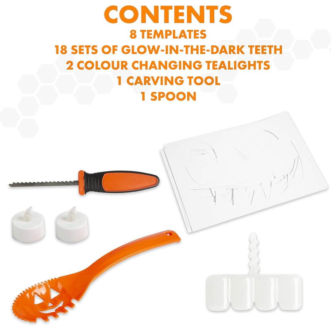 The set includes multiple pumpkin carving templates, a durable knife, spoon, glow-in-the-dark pumpkin teeth, and even color-changing tea lights to bring your creations to life. Whether you’re decorating your home indoors or placing your pumpkins outside to impress the neighbors, this kit makes it easy to create the scariest and most eye-catching pumpkins on the street. Perfect for parties, family nights, or seasonal décor, it adds extra magic and creativity to your Halloween celebrations.