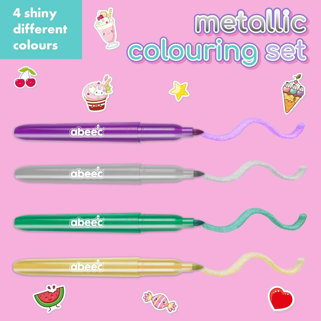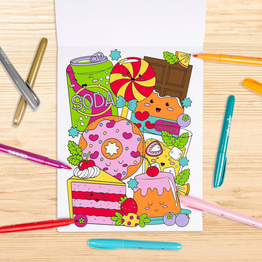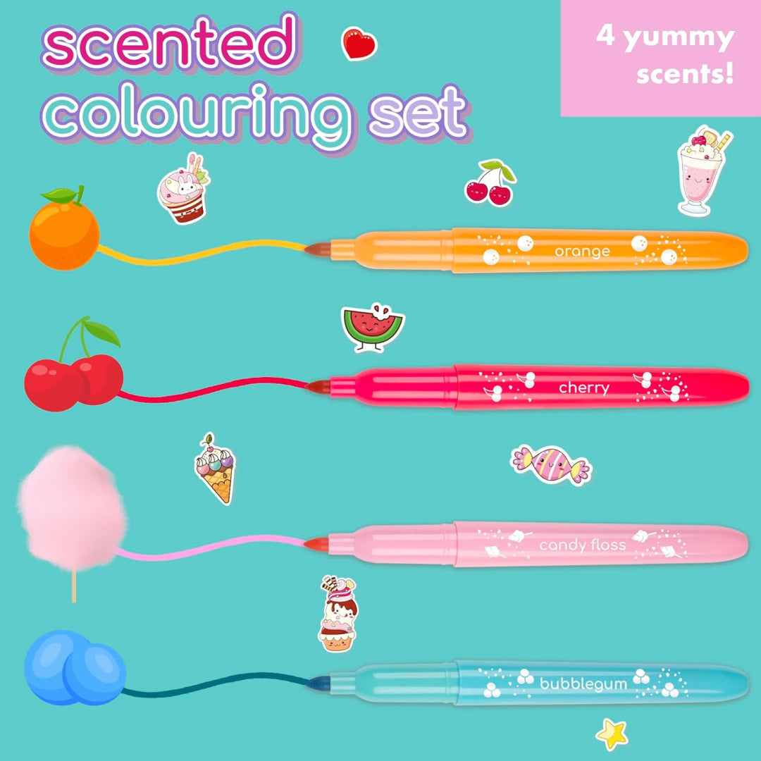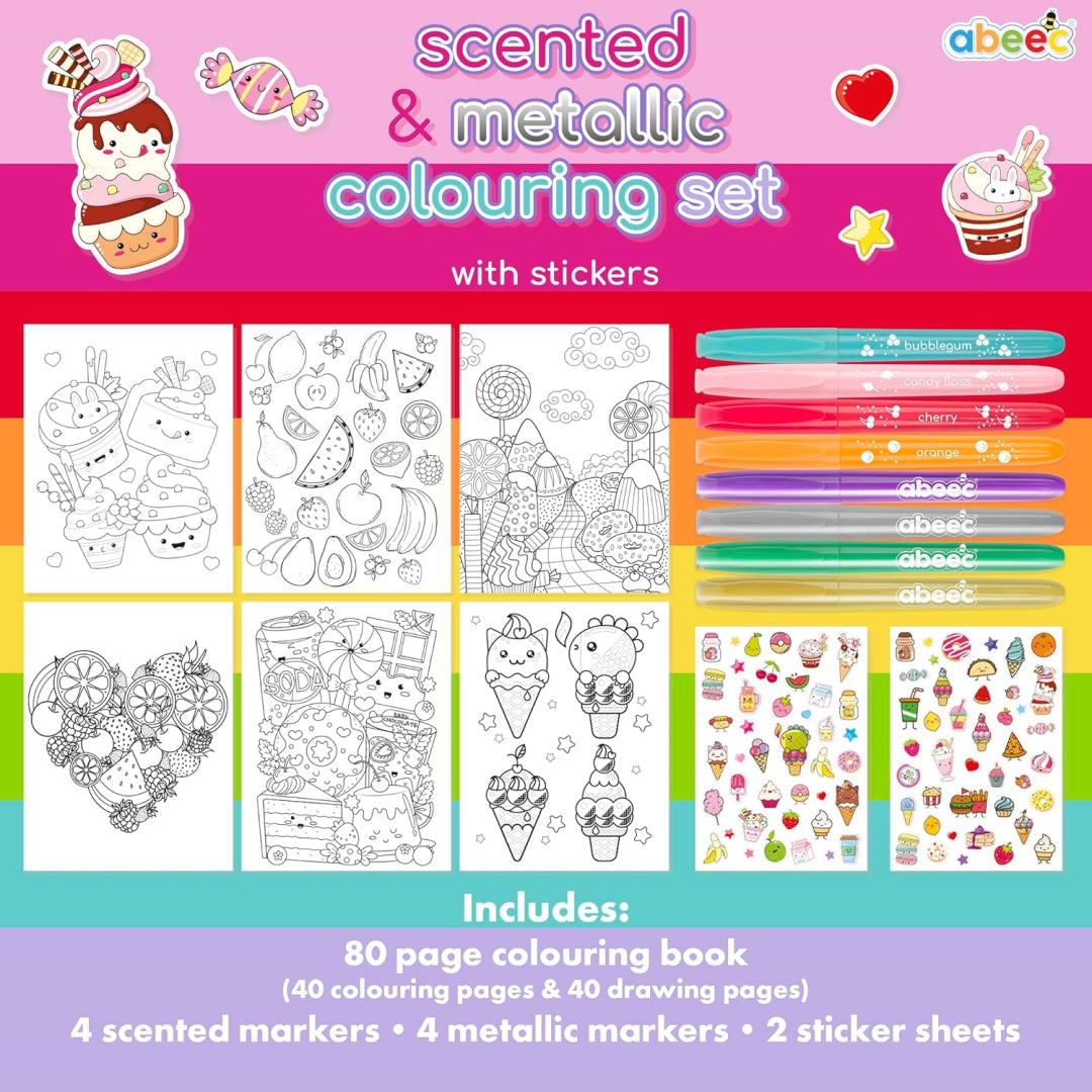 Here's where it gets seriously fun. Four scented markers in Candy Floss, Cherry, Orange, and Bubblegum fragrances transform ordinary colouring time into a multi-sensory adventure that keeps kids engaged for longer. Add to that four metallic markers in Gold, Silver, Green, and Purple for those extra-special sparkly touches, and you've got an activity set that delivers way more value than its price tag suggests. Two sheets of vibrant stickers featuring charming sweet treat designs are included too, perfect for decorating their finished masterpieces, notebooks, or anywhere else they fancy adding a bit of personality.
