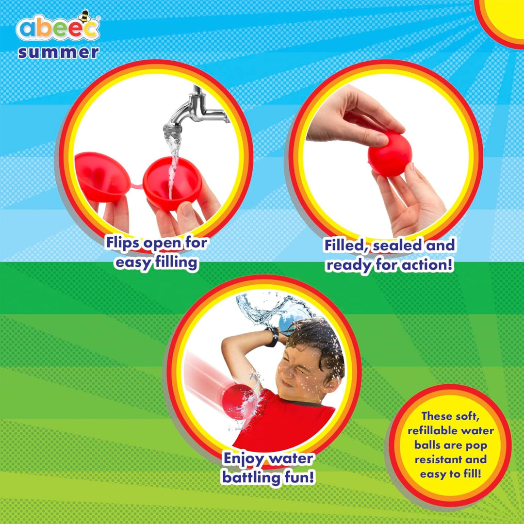 Summer sorted. The Abeec Summer Reusable Water Balls Outdoor Water Play Set brings all the splashing, soaking fun of water fights without the waste or the cleanup nightmare. These clever reusable water balloons are designed for families who want endless entertainment that doesn't cost the earth or require endless trips to the shop for replacements.