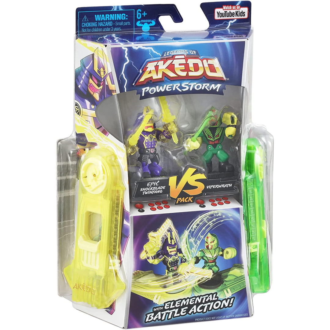 It has been a significant amount of time since the Akedo Warriors have been spotted. They have re-emerged now that a new type of elemental energy known as Powerstorm has been discovered. The Legends of Akedo Powerstorm is being introduced, in which each Mini Battling Warrior receives a power boost from one of six Elements: Earth, Fire, Water, Light Shadow, and Lightning. You can collect a total of six different Akedo Powerstorm Versus Packs.
