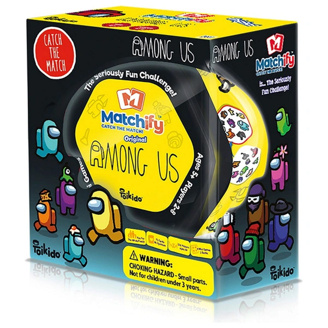 The card game Matchify Among Us is fun for the whole family. The game consists of 72 cards, each of which depicts 9 distinct Crewmates chosen from a pool of 64 possible Among Us Crewmates. One Crewmate from any card in the red deck is interchangeable with another Crewmate from any card in the blue deck, provided both cards come from the same deck. There are four different minigames included in The Matchify Among Us, all of them are timed and competitive. Engaging and difficult. Straightforward and astute.