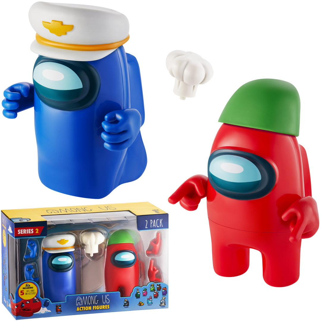Bring the world of Among Us to life with these awesome 11cm action figures! Perfect for playful afternoons and pocket money treats, this duo pack features Blue and Red crewmates ready for space station adventures. Each set comes with five cool accessories to customise your characters, letting kids mix and match to create their own unique crew.