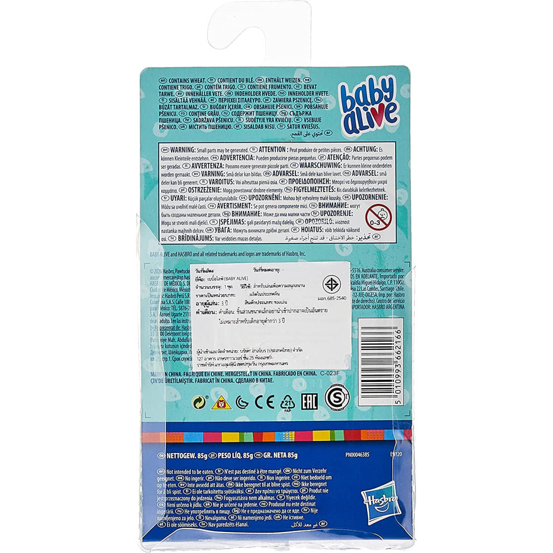 The Baby Alive Solid Doll Food refill pack is a great way to stock up on fun for feeding your dolls. You may pretend to feed your doll with the fork that is included with the set. Children have everything they need to nurture and feed their solid-food eating Baby Alive baby dolls (sold separately; subject to availability) thanks to this convenient doll food refill pack. Children can do this just like a real mother or father would by caring for and feeding their Baby Alive baby dolls. Hasbro owns the trademarks for Baby Alive, Hasbro, and any phrases relating to any of those brands.