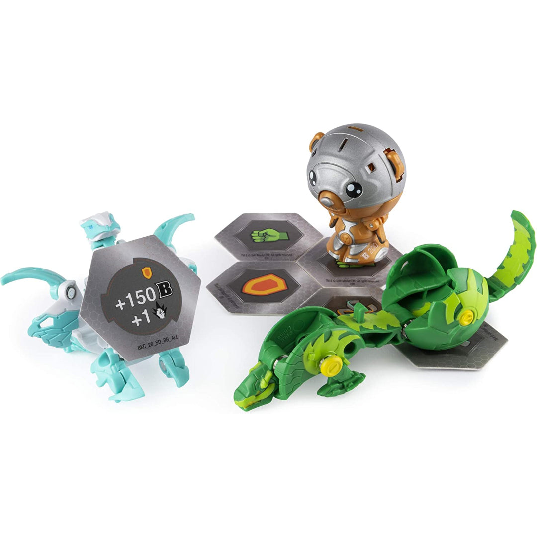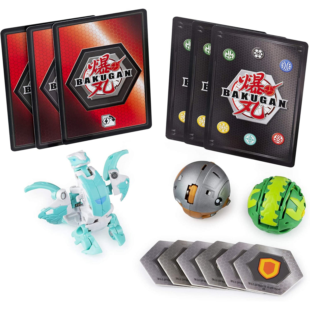 Bakugan is a trading card game, but you can have just as much fun with these figurines as you can with the cards! When the BakuCore of one Bakugan comes into contact with the BakuCore of another Bakugan, the action figure transforms into a powerful battling Bakugan. You may duke it out in the Battle Arena, where the goal is to come out on top in as many rounds as you can. You will get three Ability Cards, one Bakugan Ultra, two additional standard Bakugans, and a total of six BakuCores when you purchase this beginning set.