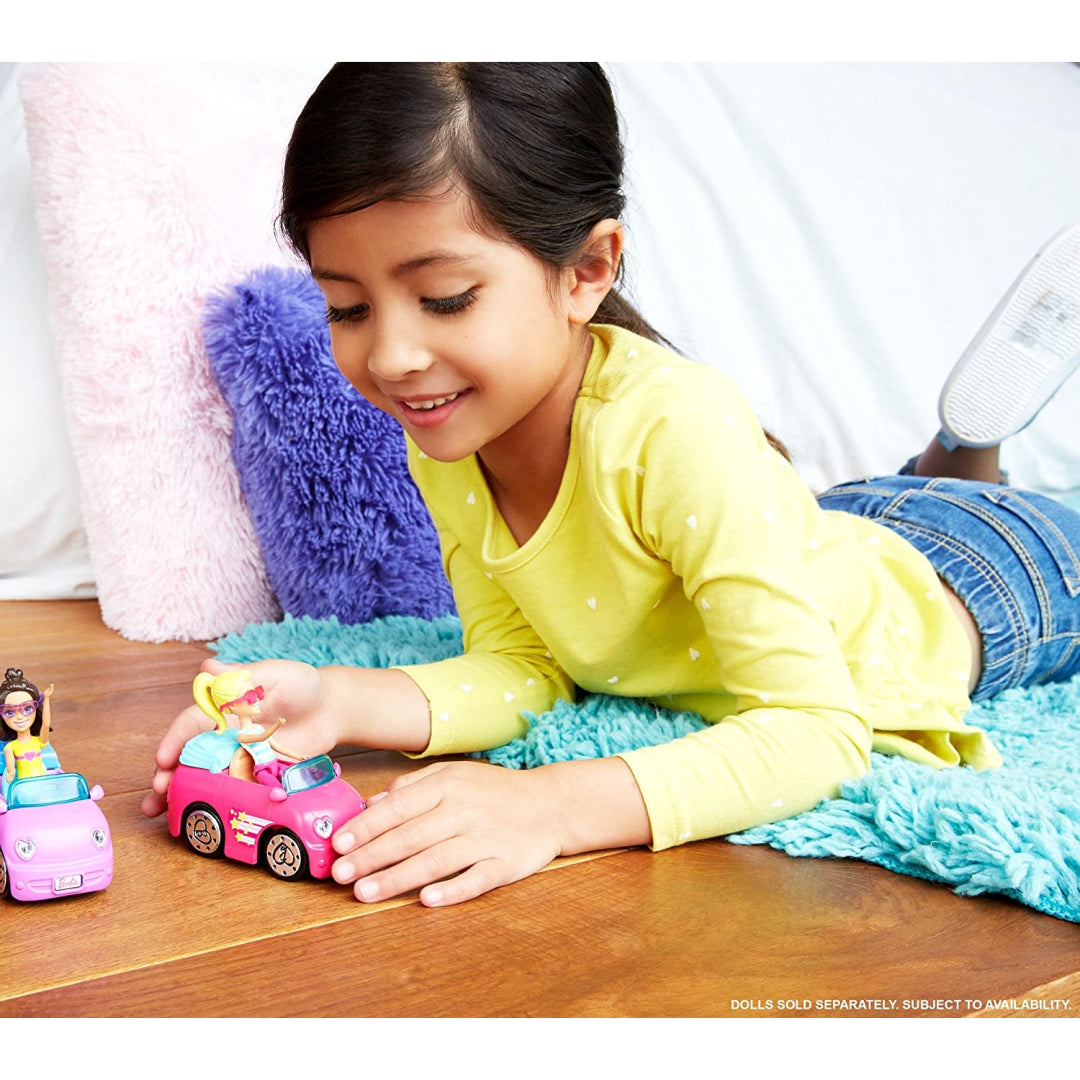 The Barbie On-The-Go doll comes with a pretty convertible that is capable of driving on its own, just like the real thing. If you want to get going, all you have to do is push the button that's on the back of the vehicle. The batteries are what make driving fun, and the button, which is designed to look like a licence plate and features the Barbie logo, gives the vehicle its signature style.