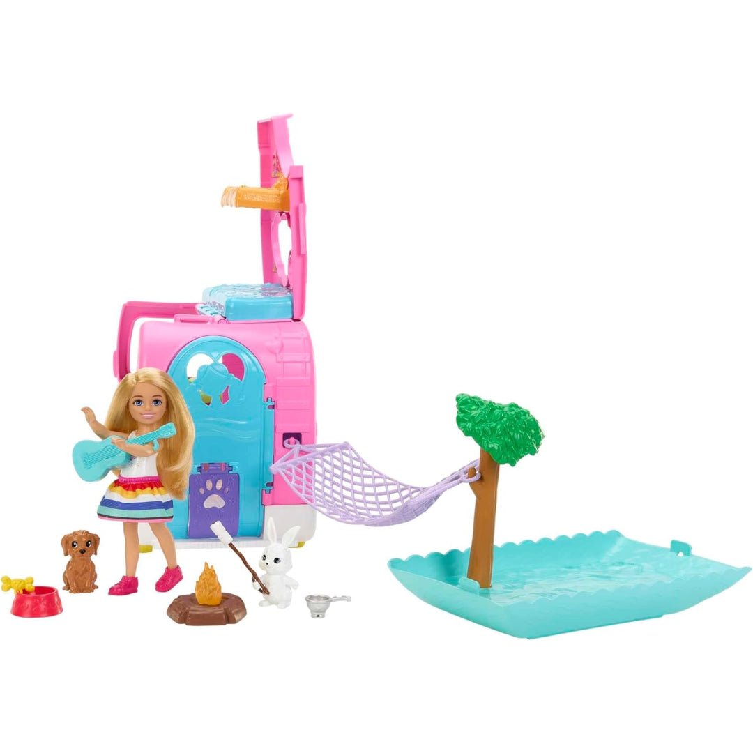 Get ready for an exciting adventure with this amazing Barbie Chelsea 2-in-1 Camper! Perfect for budget-savvy parents looking to maximise play value, this versatile playset transforms from a rolling camper into a fully-equipped campsite. Your little one can create endless stories with Chelsea doll, her adorable puppy and bunny companions, plus 14 themed accessories.