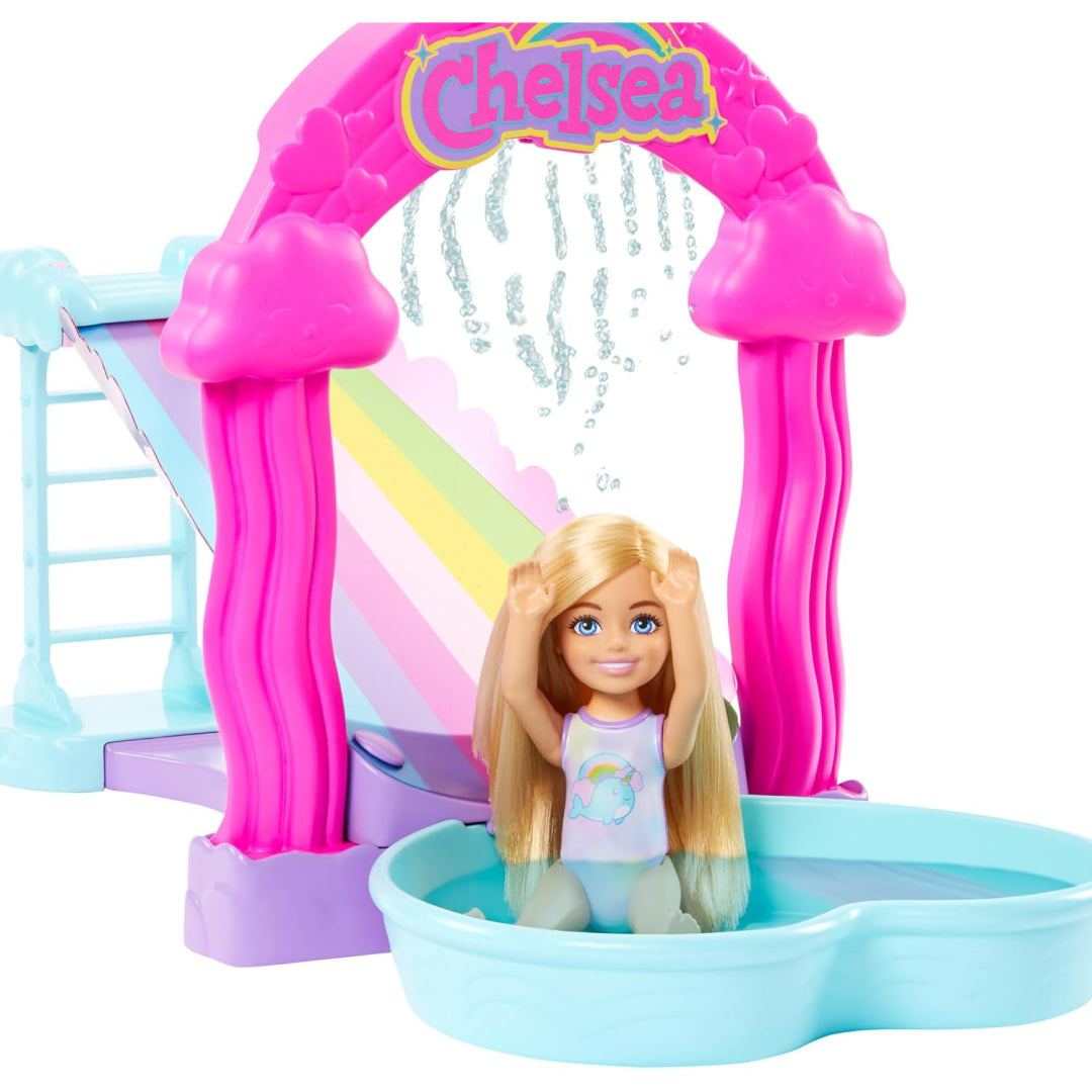 Make a splash with this fantastic Barbie Chelsea Rainbow Water Slide Playset that brings pool-day fun right to your home! Perfect for budget-conscious parents looking for quality playtime options, this delightful set features an 8-inch rainbow slide that creates magical moments with real water effects. Simply pour water into the arch to create a rain shower effect as Chelsea slides into the heart-shaped pool below.