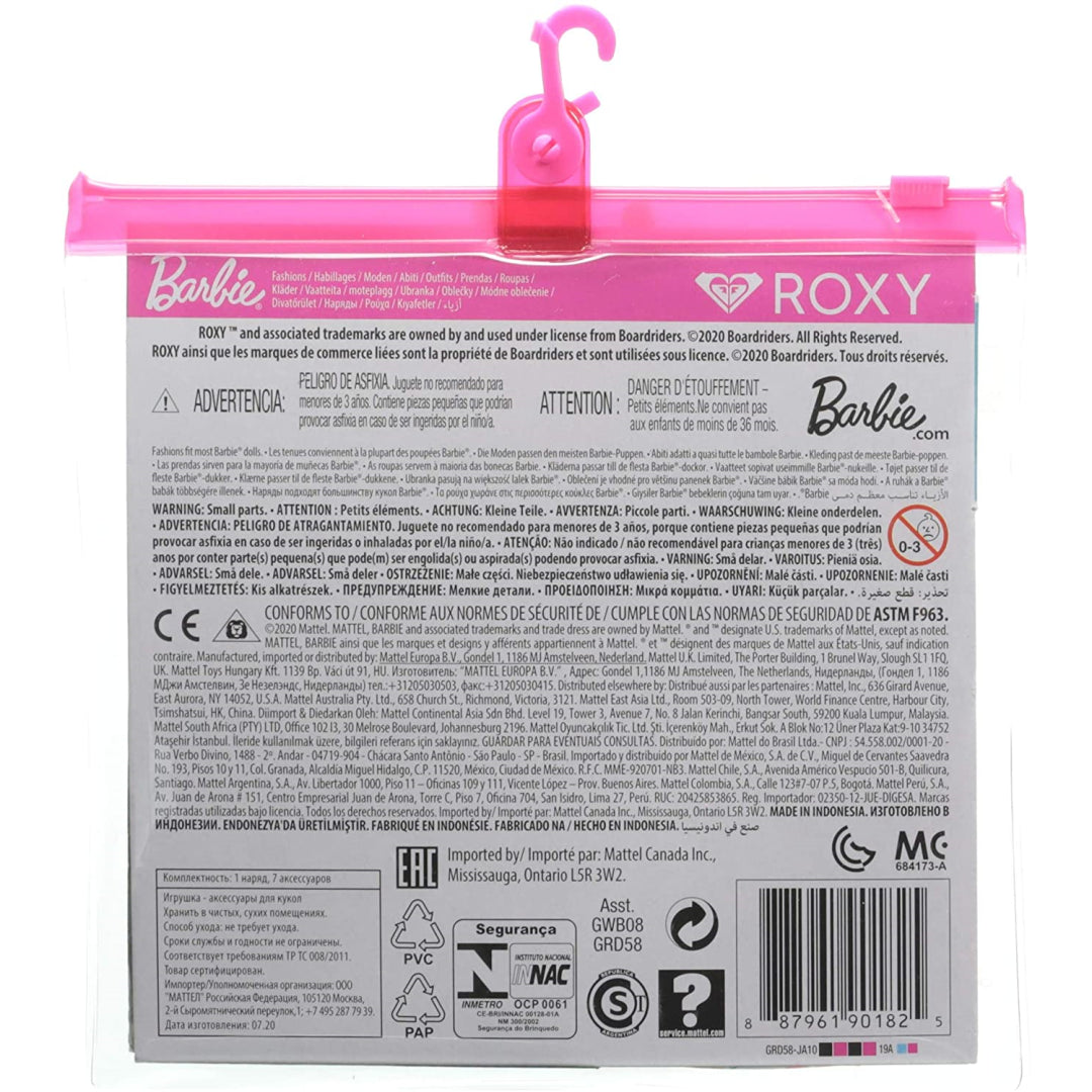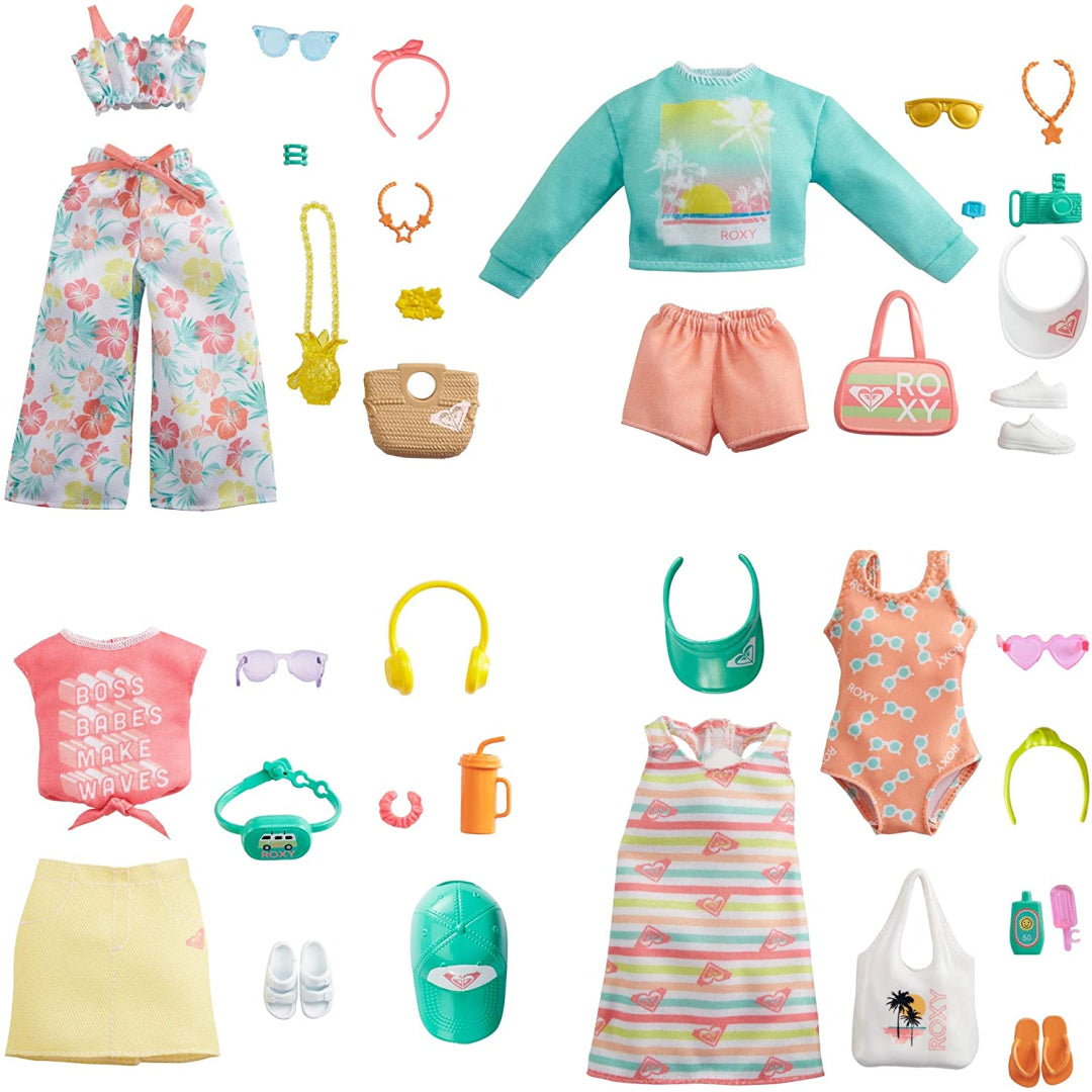 Easily identifiable motifs from famous lifestyle brand Roxy are included into the patterns and prints of this Barbie doll dress bundle (doll sold separately).