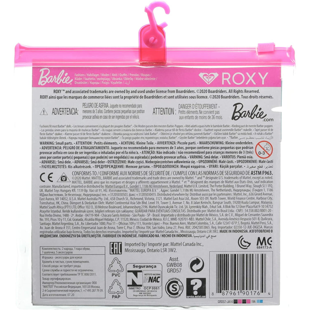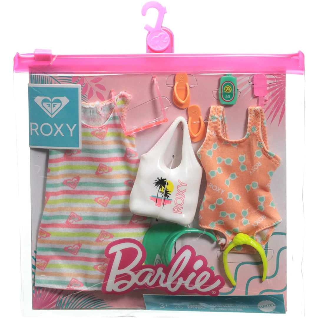 Easily identifiable motifs from famous lifestyle brand Roxy are included into the drawings and patterns for this Barbie doll dress set (doll sold separately).