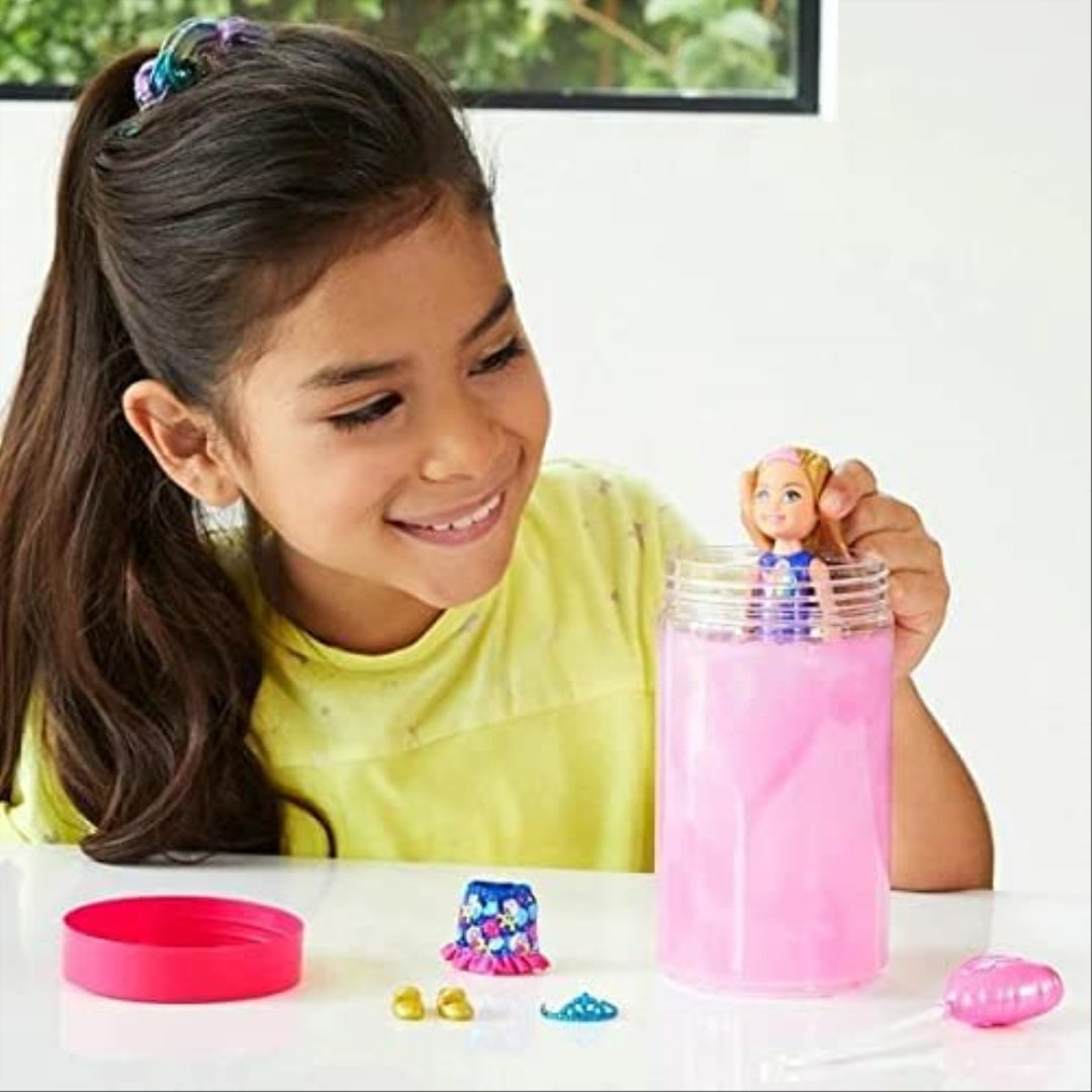 Get ready for a splash of excitement with this Barbie Colour Reveal Chelsea doll! Perfect for those surprise-loving little ones, this magical doll transforms when dunked in water. Simply pop her in, give her a spin, and watch as she reveals her unique look - it's like getting a surprise present every time you play!