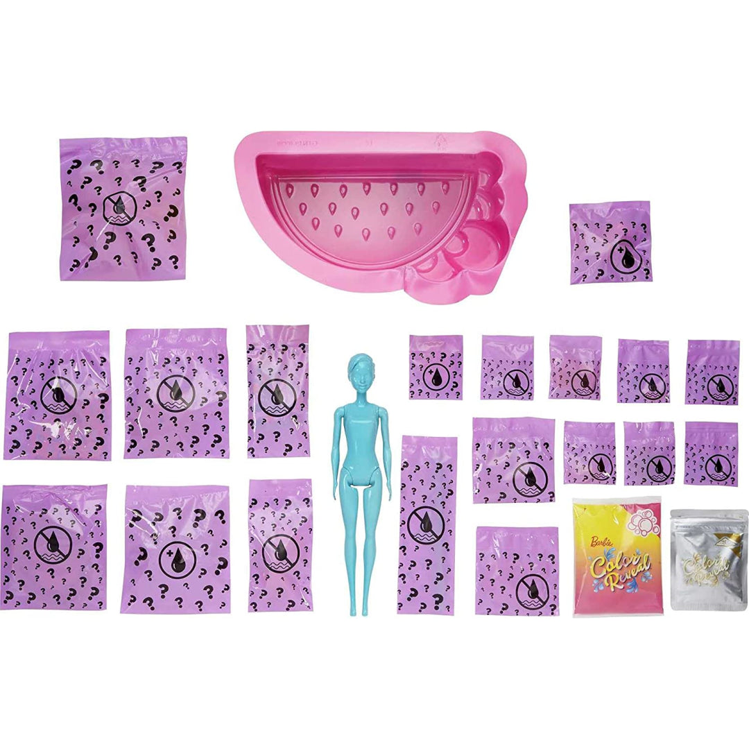 Watch their eyes light up as they discover a colour-changing Barbie doll and adorable pet dolphin, both revealed through delightfully scented watermelon foam. With two complete watermelon-themed outfits and five different colour-change features, your little one can create endless styling combinations.