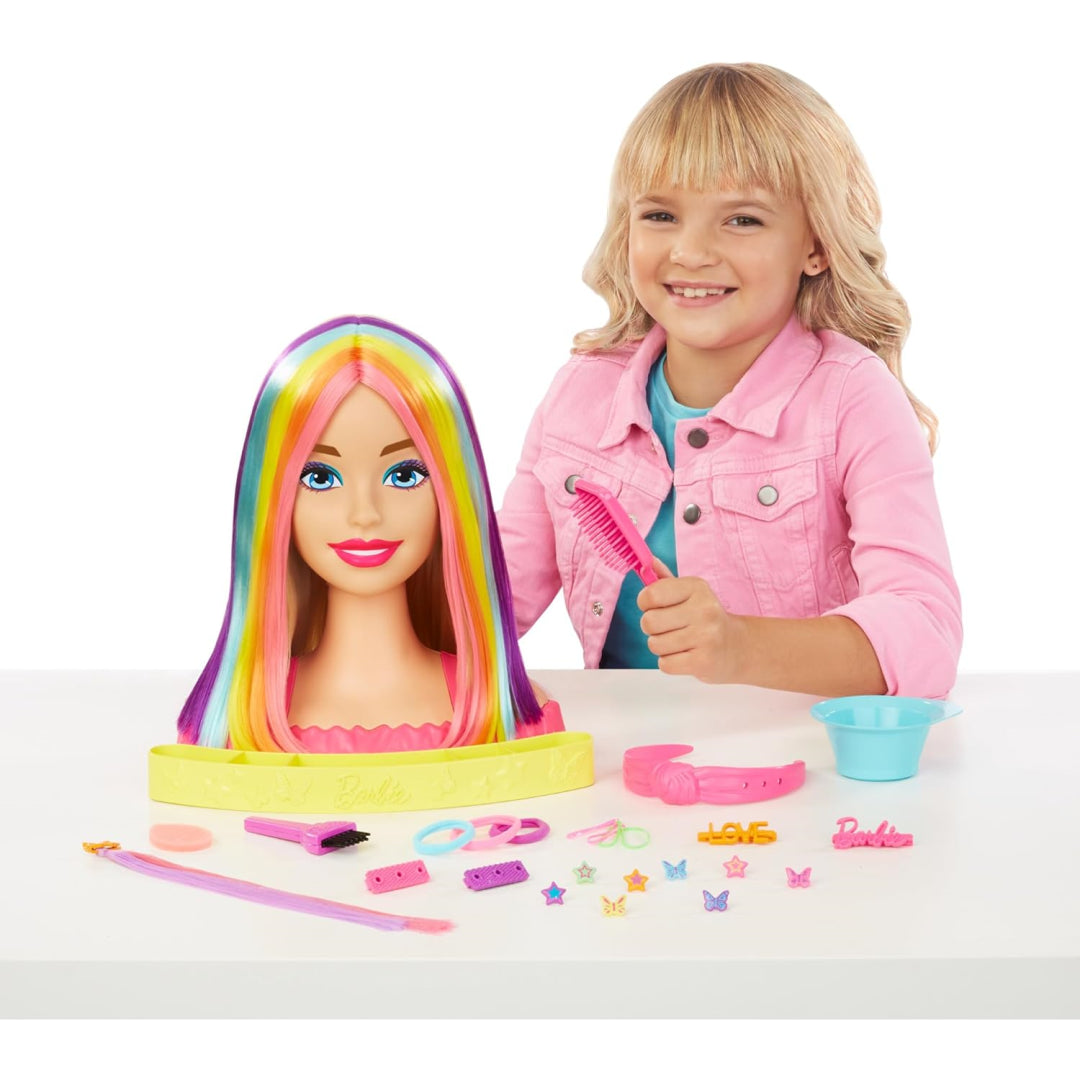 Get ready for a styling adventure with this amazing Barbie Colour Reveal Styling Head! Perfect for creative kids who love playing hairdresser, this value-packed set comes with a whopping 22 accessories to keep little ones entertained for hours. The gorgeous blonde hair features eye-catching neon highlights that are ready for endless styling possibilities.