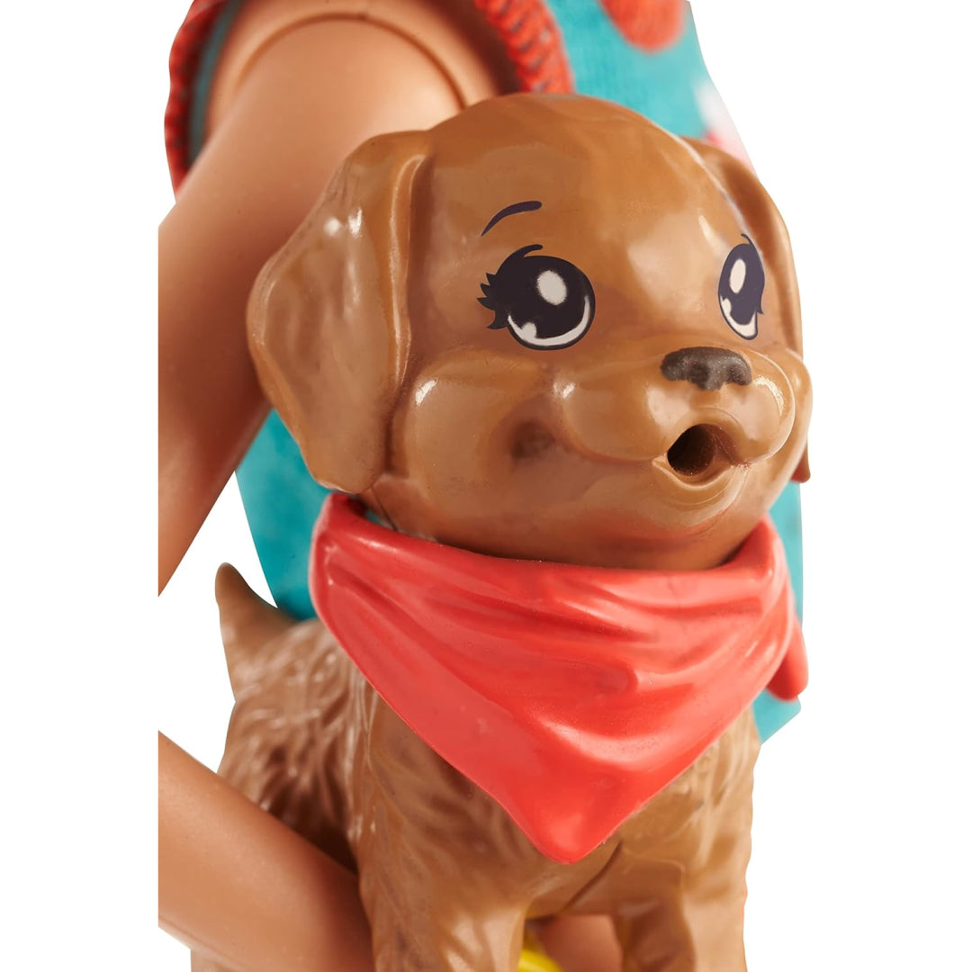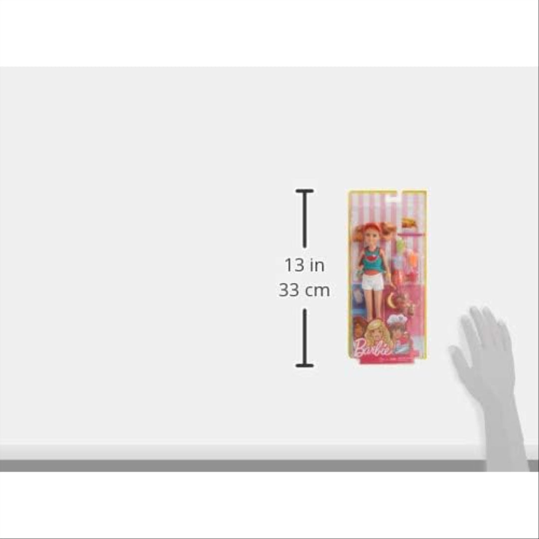 Make way for entrepreneurial fun with this Barbie Stacie doll and her adorable canine business partner! Perfect for imaginative play, this set lets your little one create their own healthy juice bar adventures. Stacie comes dressed for success in her trendy outfit featuring a watermelon-print turquoise shirt, white shorts, and matching accessories including an orange sun visor.