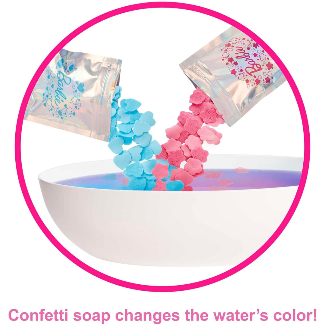 Turn bath time into a magical playtime experience with this fantastic Barbie doll and bathtub playset! Perfect for budget-savvy parents looking to bring extra joy to their little ones, this set includes a poseable Barbie doll dressed in a stylish two-piece swimsuit and sarong, ready for a relaxing soak with her adorable puppy companion.