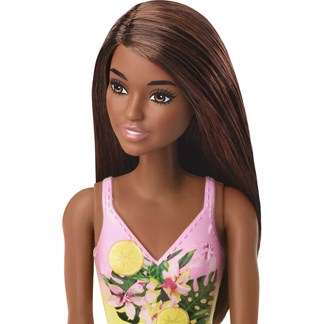 For a day spent lounging by the pool, a pink and yellow bikini with a colourful flower pattern is what Barbie doll is sporting.