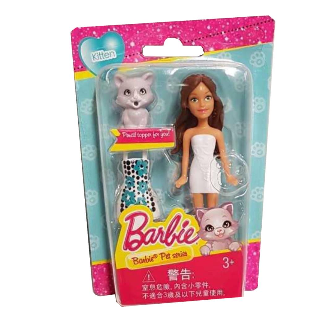 Barbie Mini Doll with White/Blue Flowers Dress & Kitten – A mini Barbie dressed in floral fashion, complete with a cute kitten companion.