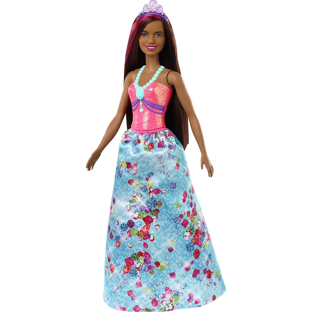 Let your little one's imagination soar with this enchanting Barbie princess doll from the magical Dreamtopia collection. Perfect for creative play without breaking the bank, this royal beauty features a dazzling pink bodice and a stunning skirt adorned with gemstone-inspired prints that catch the light beautifully.