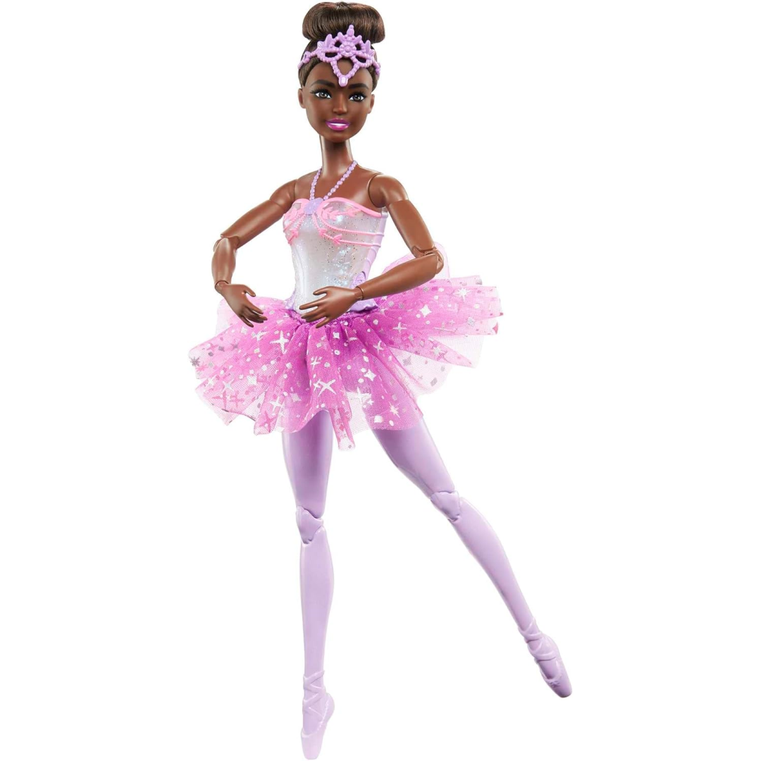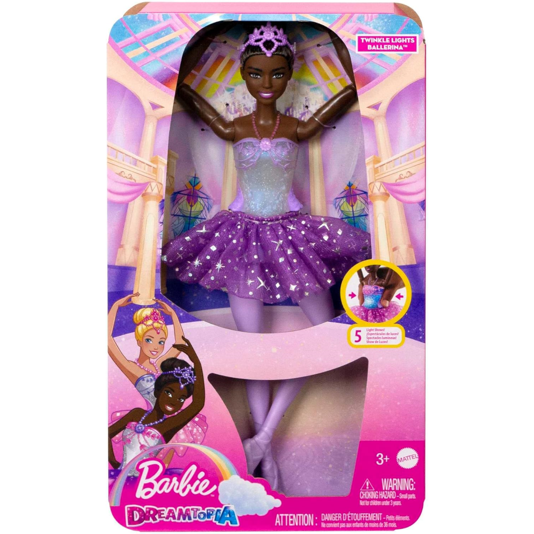 Transform playtime into a magical experience with this stunning Barbie Dreamtopia ballerina doll. Perfect for busy families looking for great value toys that spark imagination, this beautiful brunette ballerina brings dance and light together brilliantly. Her elegant bun and sophisticated headpiece set the stage for a spectacular show, while her light-up bodice creates five dazzling colour displays at the press of a button.