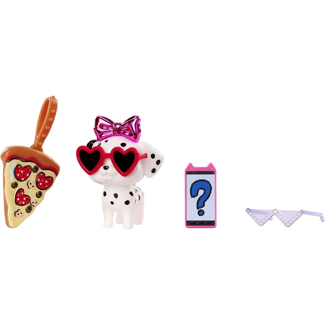 Her purple boots with buckle details add extra sass, while the pizza-slice purse and micro translucent sunglasses bring the fun factor your kids will love. She comes with layered jewellery for endless styling possibilities, and her pet dalmatian puppy is equally fabulous with heart-shaped sunglasses, a pink bow, and even its own smartphone accessory!