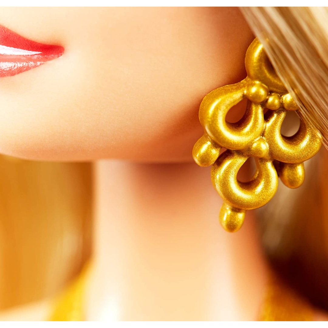 This Barbie doll's straight blonde hair is ready for endless styling adventures, while her gorgeous accessories - including red strappy sandals, golden teardrop earrings, and a chic gold clutch - make her party-perfect. She's an ideal Christmas treat that won't break the bank, bringing both play value and festive cheer to your little one's collection.