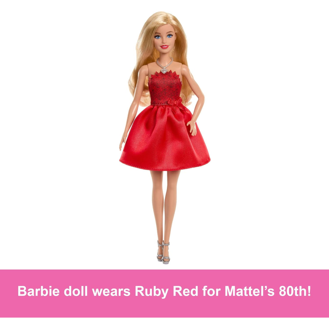 This special edition Barbie doll celebrates Mattel's 80th anniversary in proper style, and what a treat she is for collectors and kidults alike. Dressed in a gorgeous ruby-red gown with a bodice that nods to the iconic Mattel logo 'cogs', she's ready to party with a touch of nostalgic charm that'll make any Barbie fan smile.