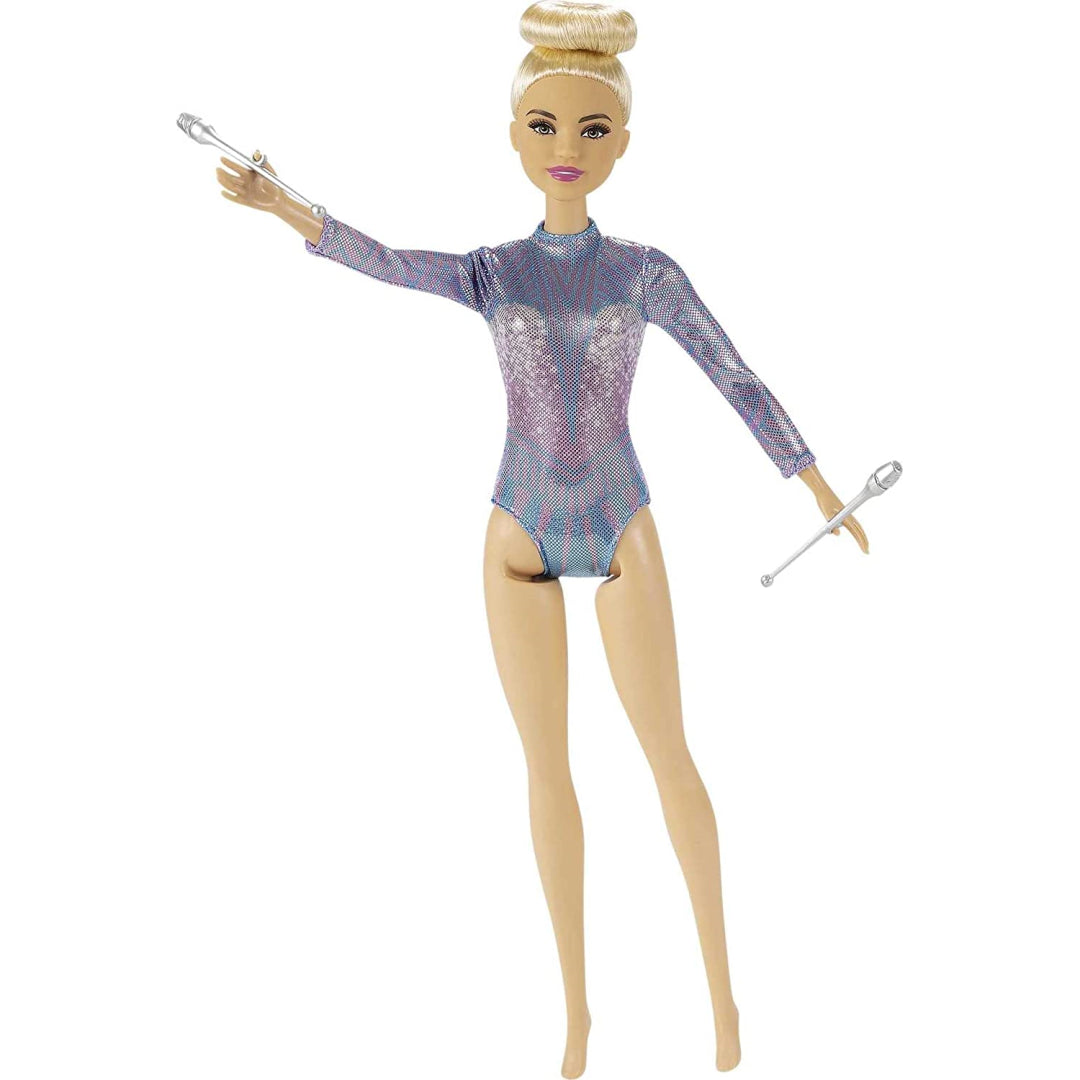 Get ready to sparkle and save with this amazing Barbie Rhythmic Gymnastics doll! Standing at 30.40cm tall, this blonde beauty comes dressed in a stunning metallic leotard and sports a perfect gymnast bun. Your little one can create endless routines with the included ribbon and batons, which the doll can actually grip - making playtime both realistic and engaging.