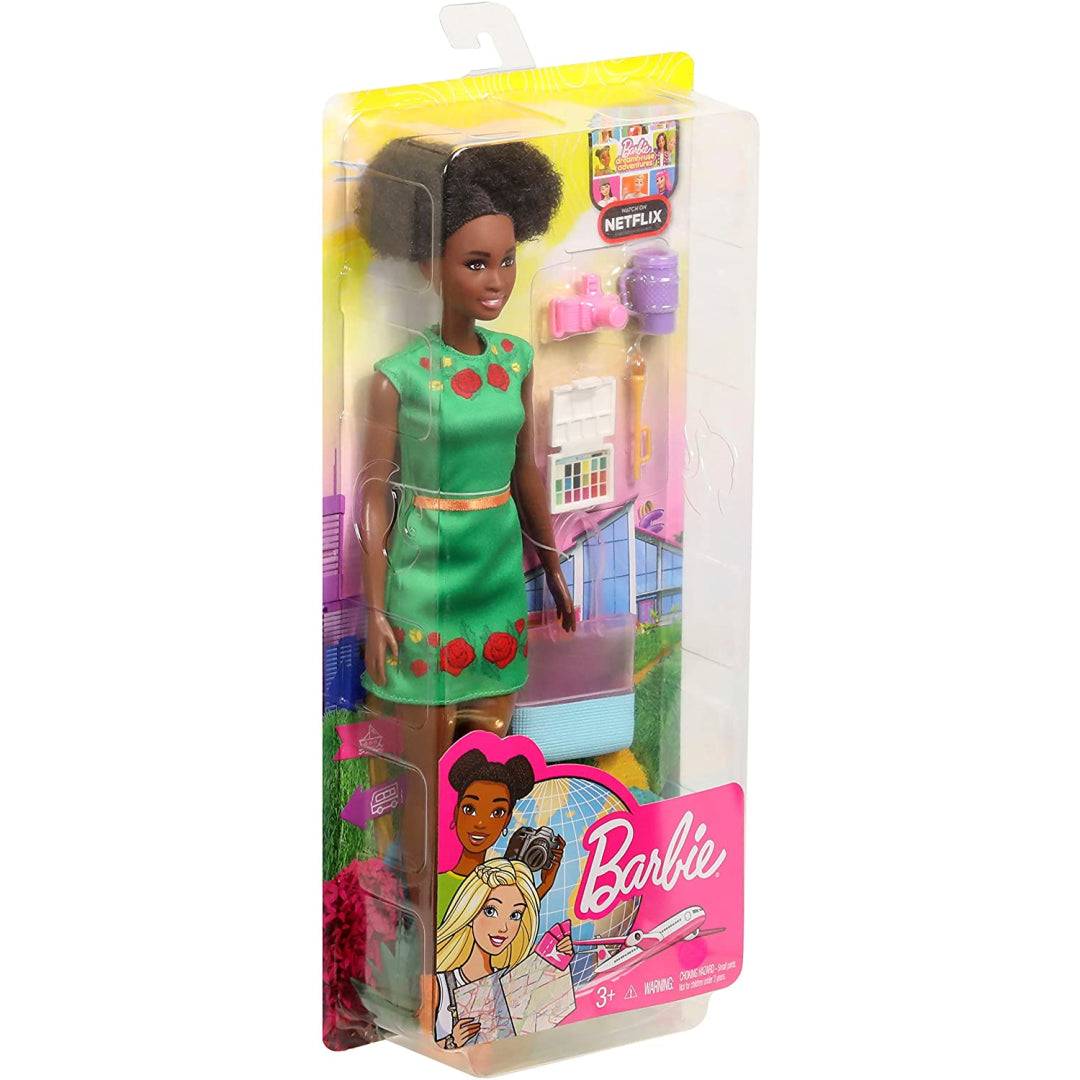 Young adventurers may follow Barbie doll and her family, including Nikki doll, all around the globe with playsets that are themed around travel. Nikki doll, which was designed in part after the Barbie doll featured in the video game Barbie Dreamhouse Adventures, comes with five travel-themed accessories, all of which are colourful and exciting, and make it simple to take in the views. Nikki doll wears an outfit that is both laid-back and on-trend for her trip, and she carries a tote bag with her that is equipped to store all of her essentials for the journey, including a camera.