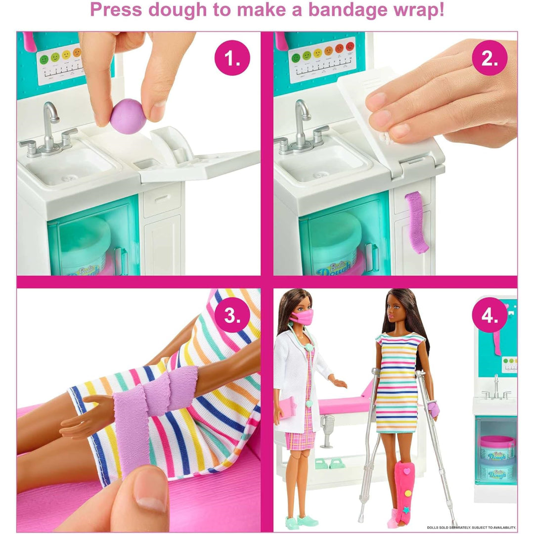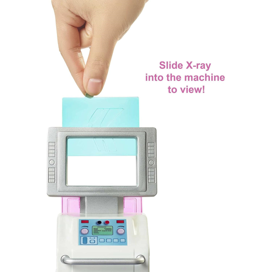 Your little one can help Barbie care for patients using the exam table, X-ray station, and medical station. The real fun begins with the included dough - create colourful casts in pink, purple, or white, and personalise them with stickers! There's even a bandage-making station for treating minor bumps and scrapes. When it's time for a break, pop into the cheerful gift shop area for a pretend snack or present.