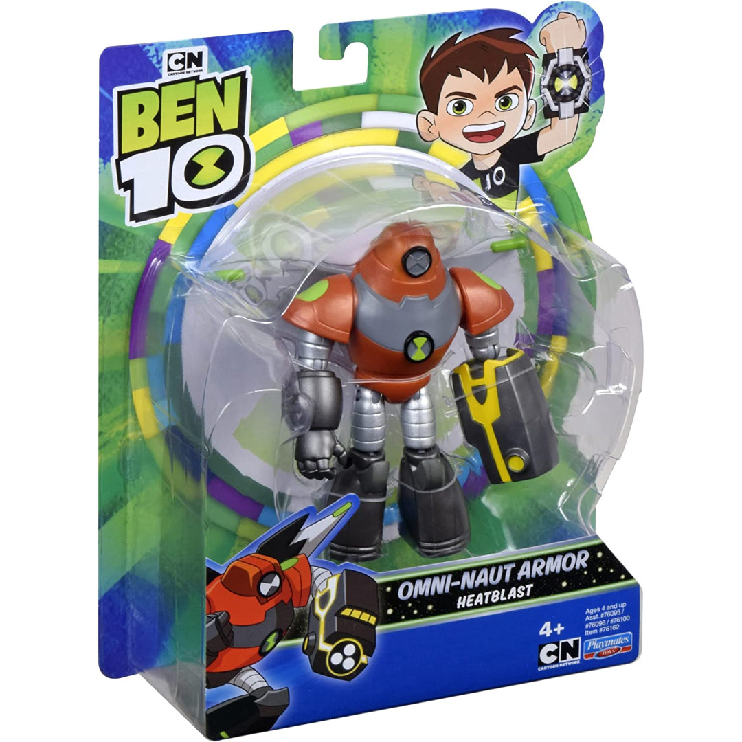 With his brand-new Omni-Naut armour, Heatblast is a cosmic inferno waiting to happen! This fiery space suit not only bolsters Heatblast's fire capabilities but also enables him to travel to greater distances in space. Additionally, his blazing fist is now equipped with a powerful and innovative fireblaster that will charbroil any alien foe! Get the hell out of this galaxy if you can't handle the temperature!