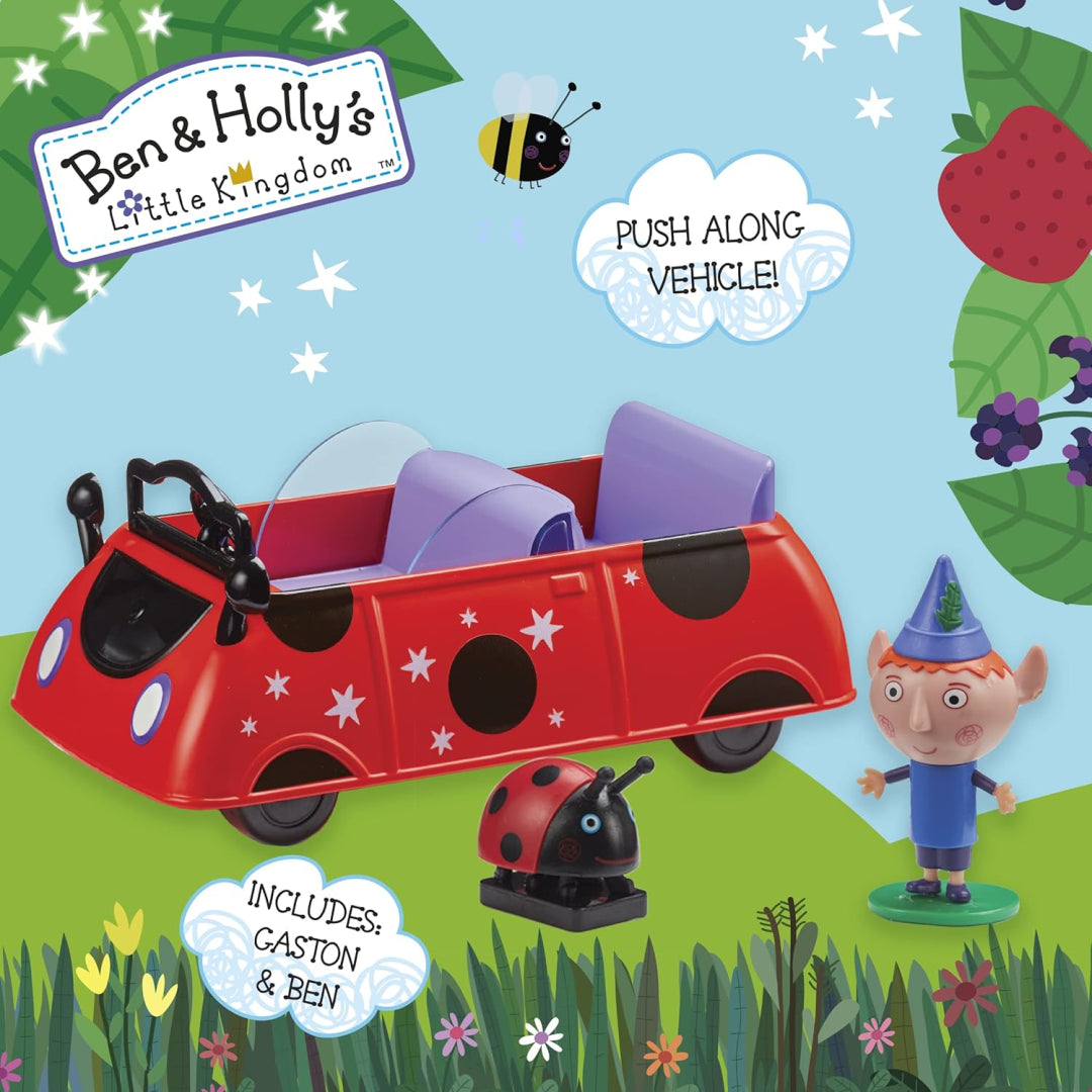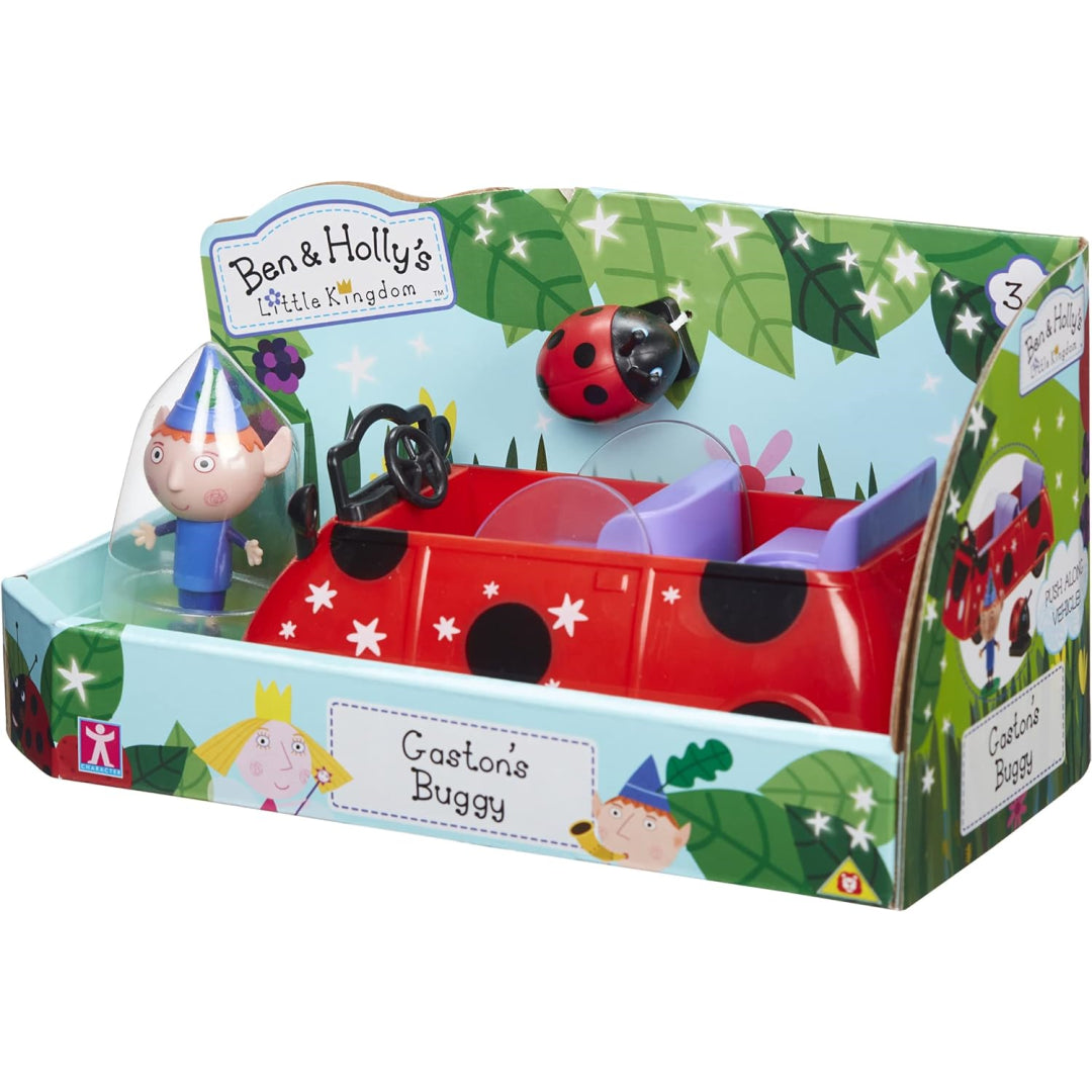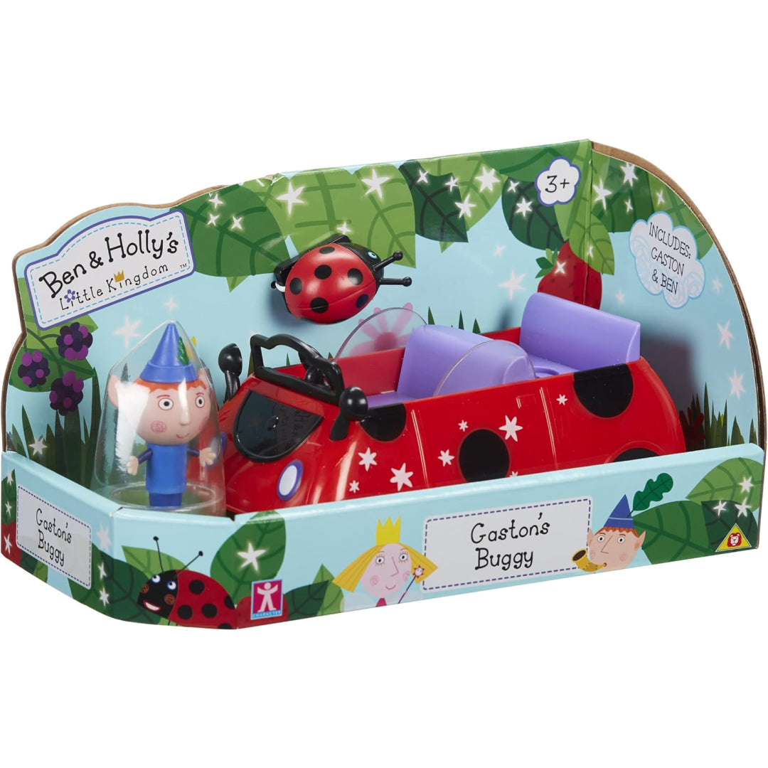 There are moments when the Little Kingdom need more than magic to function. Ben Elf's Gaston Buggy takes you quickly from point A to point B. Ben and Gaston are the two characters that come with this push-along automobile. With its ladybird-themed bodywork and wind deflectors shaped like wings, the Gaston Buggy is ideal for darting across the Little Kingdom. sized to be played with alongside other Ben & Holly playsets, cars, and figurines.