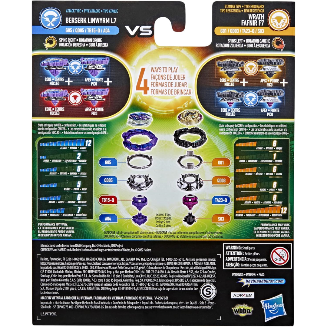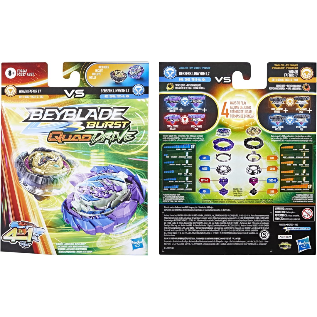Experience the exhilarating realm of Beyblade Burst with the Quad Drive Wrath Fafnir F7 vs. Berserk Linwyrm L7 Battling Top Toy! This captivating set immerses you in strategic battles as the left-spin Wrath Fafnir F7 goes head-to-head with the right-spin Berserk Linwyrm L7. Harness the power of Quad Drive technology, enabling customization, strategic planning, and thrilling victories in epic Beyblade clashes. Showcase your Beyblade expertise with this exciting battling top toy, ensuring hours of competitive and adrenaline-pumping entertainment!
