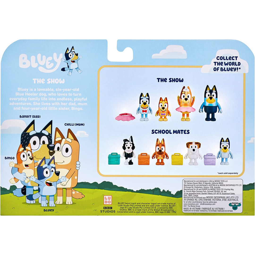 These Figures stand between 2.5 and 3 inches tall, making them the ideal size for the hands of pre-schoolers to play with. To complete your collection of Bluey's family and friends, each figure is packaged in a set of four.
