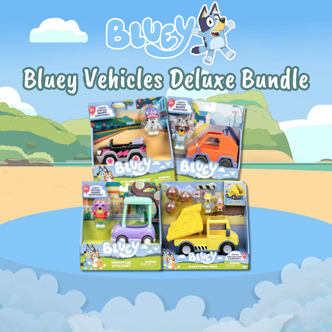 Bring the fun of Bluey’s adventures to life with the Vehicles Deluxe Bundle! Perfect for fans of the hit show, this collection features Bluey, her friends, and family vehicles for imaginative play, storytelling, and action-packed fun around every corner.