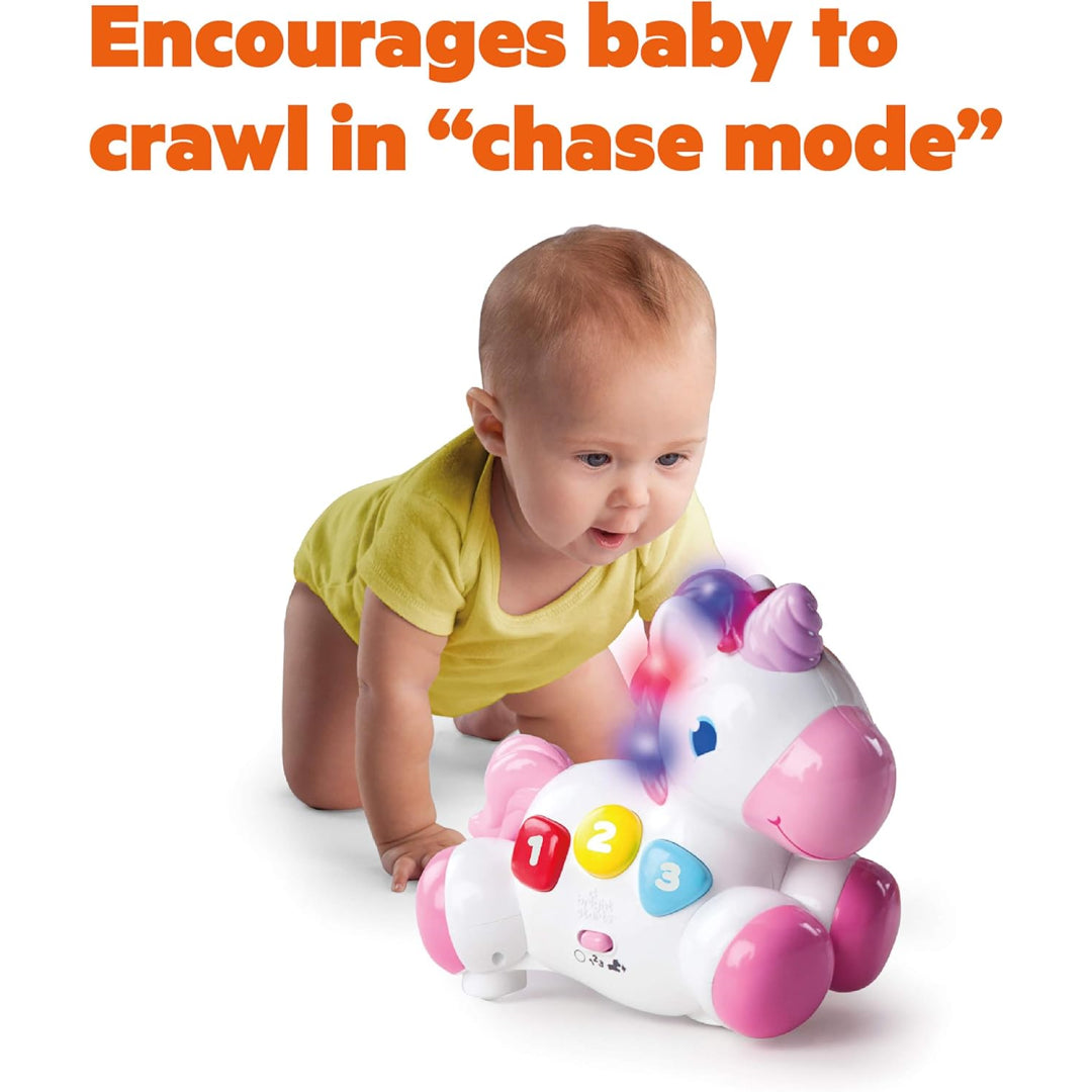 Looking for magical playtime that won't break the bank? This delightful Bright Starts unicorn brings enchanting fun with lights, sounds, and movement that'll keep your little one giggling for hours. Simply tap the magical horn to start the adventure! Perfect for both learning and active play, it features two brilliant modes - Discovery Mode teaches colours, shapes, and numbers, while Chase Mode turns playtime into an exciting pursuit as your tot follows their new glowing friend across the floor.