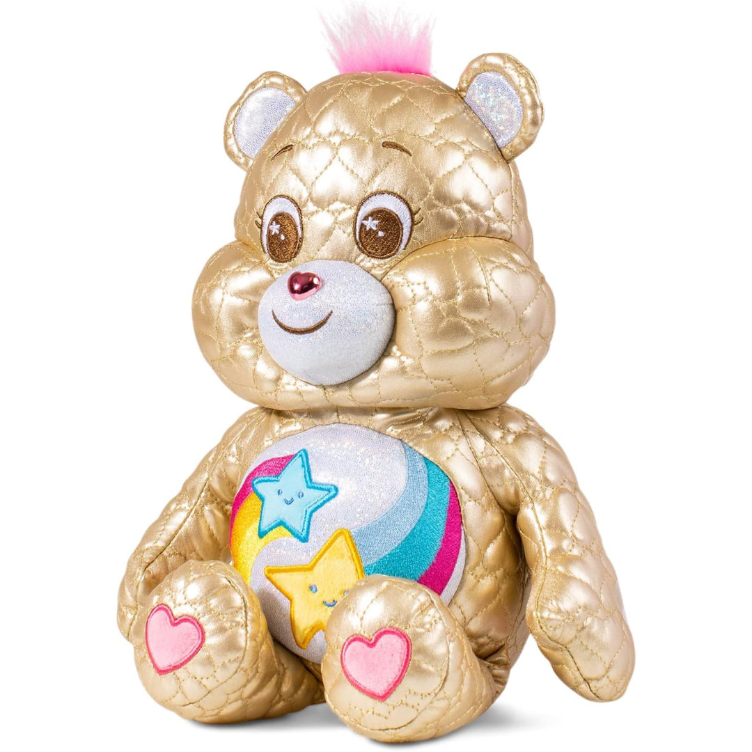Remember when you spent hours arranging your treasures just so? This limited edition Care Bears Dare to Care Bear brings that same magic, wrapped in gorgeous golden quilted fabric that catches the light beautifully. The glittery silver belly badge, mouth, and ears add a touch of grown-up glamour, whilst that sweet heart-shaped pink nose reminds you why you fell in love with these characters in the first place.
