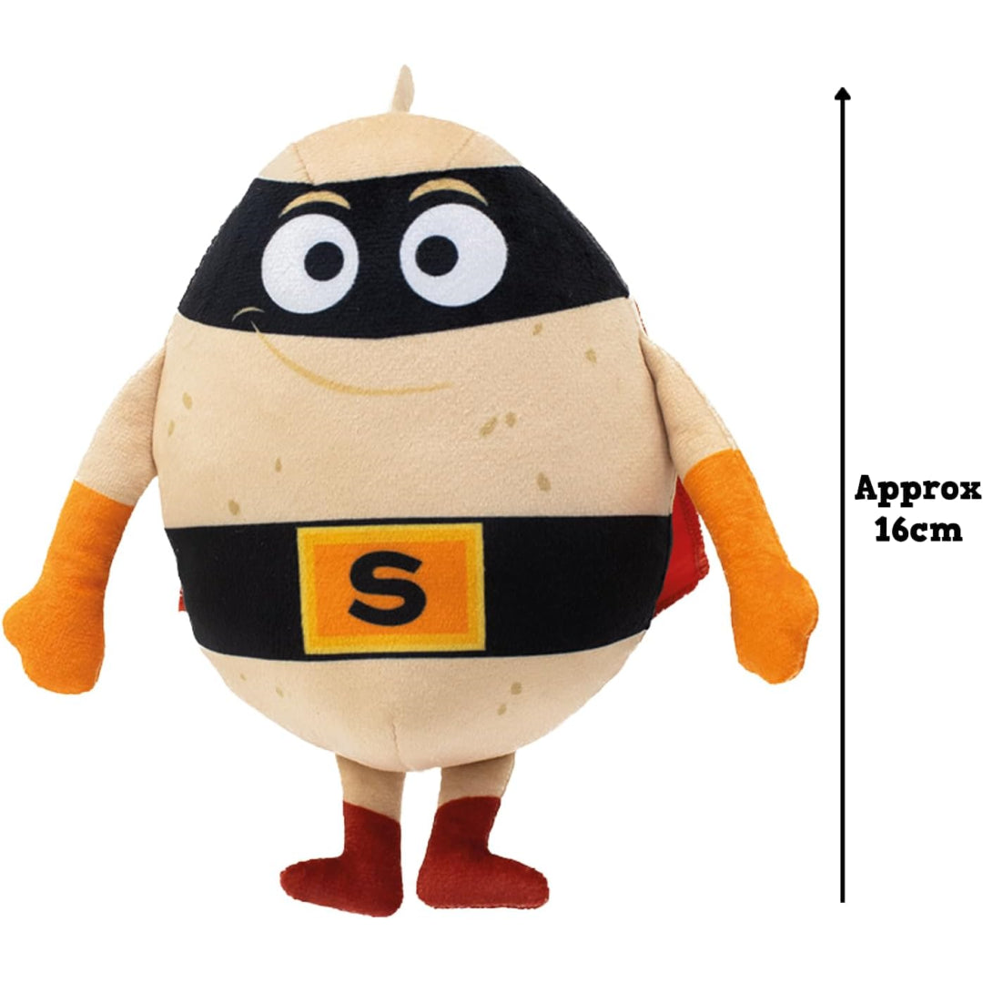 Make storytime spring to life with this CBeebies Supertato plush, bringing your little one's favourite veggie superhero right into their hands! At 16cm tall, he's the perfect size for little adventures and big cuddles. Complete with his signature cape and mask, this brave potato is ready to join your child's imaginative playtime missions.