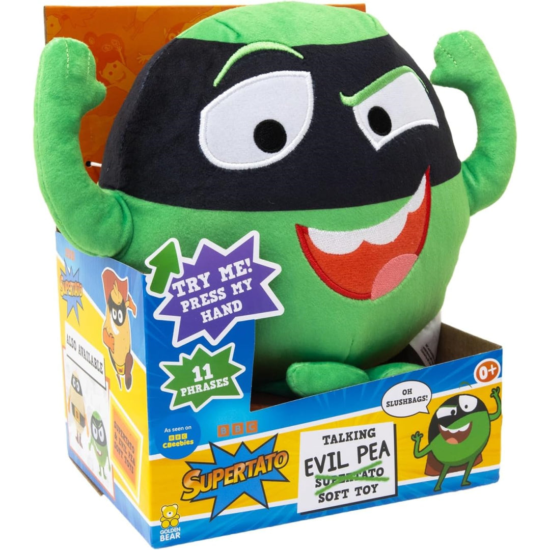 Looking for a fun, interactive toy that won't break the bank? This Cbeebies Supertato Evil Pea talking plush is perfect for little fans of the hit show. Your little ones will love pressing Evil Pea's hand to hear 11 different phrases straight from their favourite supermarket adventures.