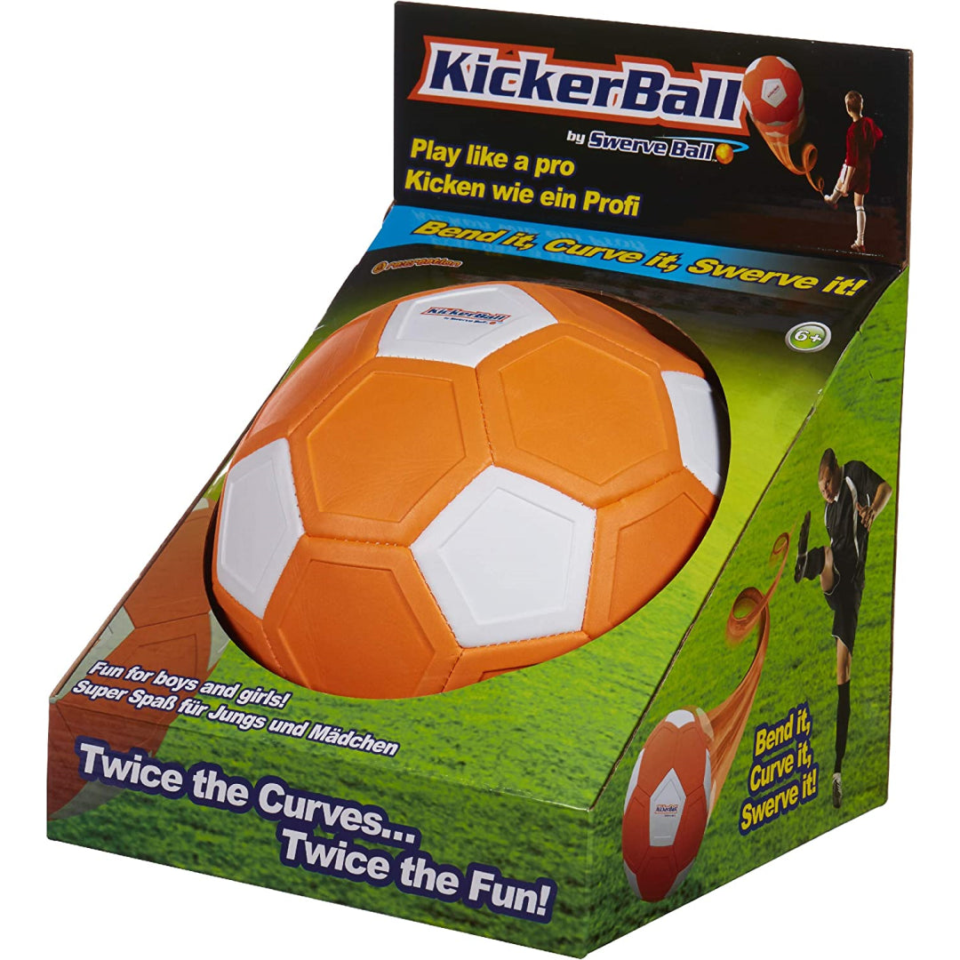 The KickerBall was developed to have a greater degree of lateral movement than any other ball. The shape of our ball, which is now being considered for a patent, makes it very enjoyable for doing trick shots both on and off camera. You may take your game of striker vs goalie to a whole new level, or you can put up various objects that you can hit with a variety of swerving trick shots.