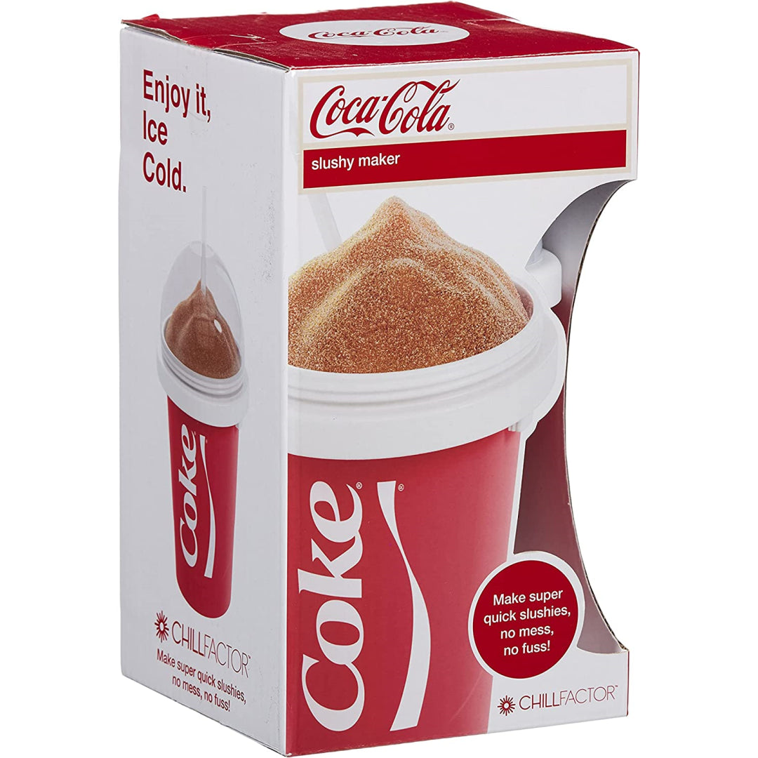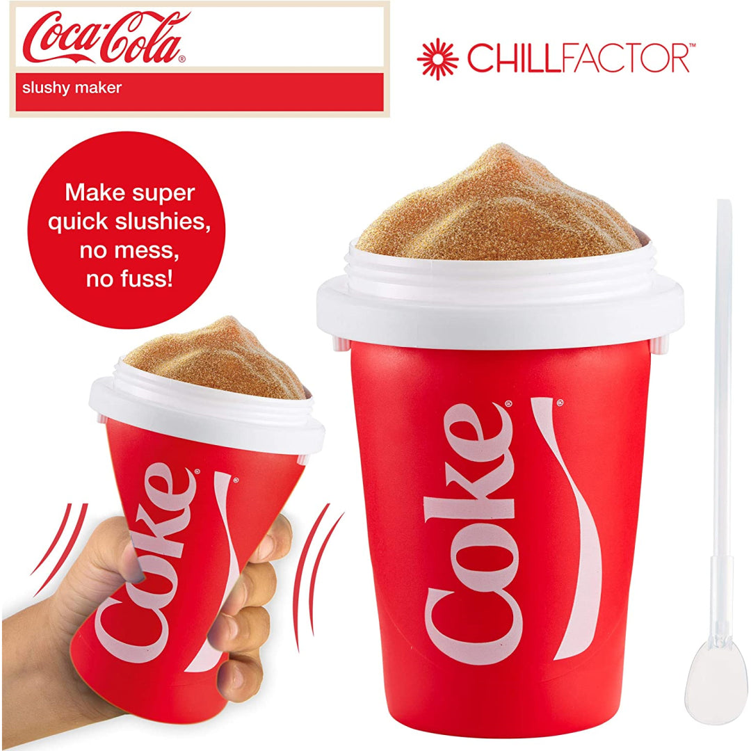 The ChillFactor Coca-Cola Slushy Maker makes it possible for you to prepare delectable slushies in a matter of seconds. There is no ice, no need for blenders, and no mess. Freeze, squeeze, enjoy Put your ChillFactor Coca-Cola Slushy Maker in the freezer, wait for it to freeze, and then add your preferred chilled beverage and squeeze it. It's as easy as that.