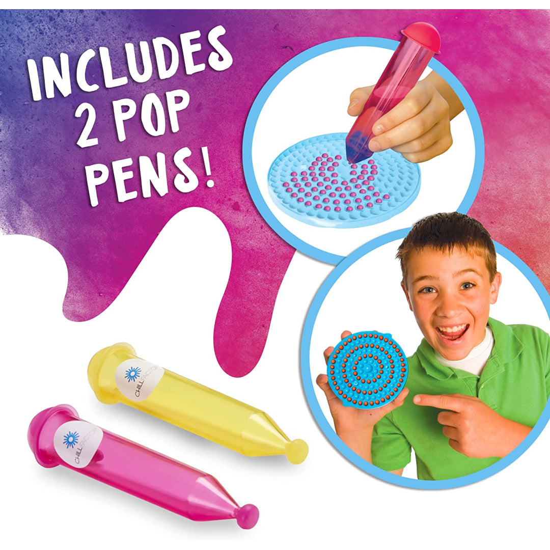 You can add whatever you like to your Poppin' Dots, whether it be fruit, sprinkles, chocolate chips, or syrups œ the options are virtually limitless. You and your loved ones, as well as your friends and family, are going to have a great time coming up with innovative flavour combinations. In addition to that, there are two portable pop pens included in the set, giving you even more freedom to create Poppin Dots wherever you go! Make dishes with a variety of flavours using just one tray! The Poppin' Dots Frozen Dot Maker is reusable. After each use, simply wash the unit and trays in warm soapy water, and they will be clean and ready to use for your next Poppin Dots party. The set also comes with reusable cups and spoons, allowing you to serve the beverage as soon as it is ready. Repeatedly put your Poppin Dots Frozen Dot Maker to good use, because the fun you can have with ChillFactor is endless.