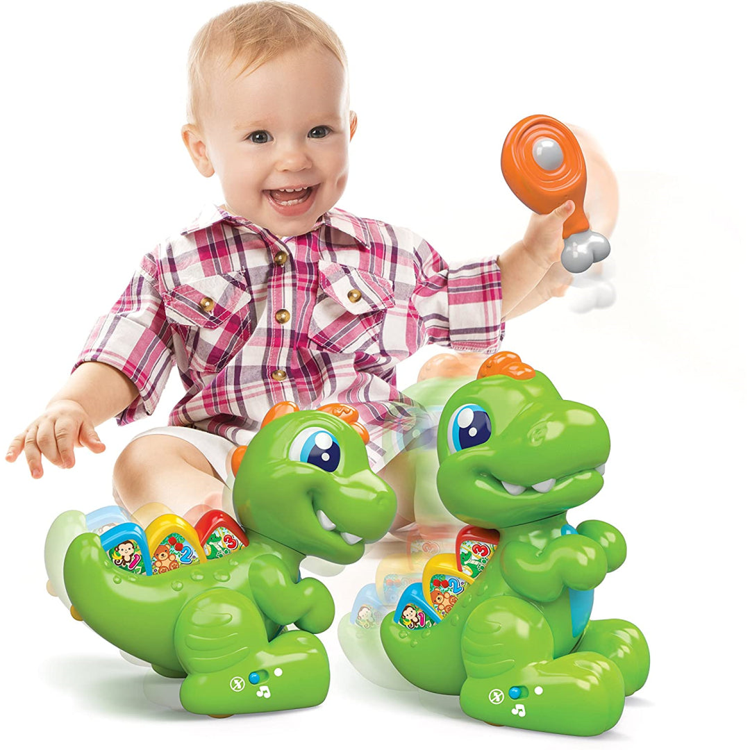 A play companion that help children learn about letters, numbers, and animals while also encouraging them to take their first steps. Simply shaking the delightful small rattle causes the dinosaur to move in the direction of the sound and sing humorous melodies, assisting the kid in the development of sensory perception, motor coordination, and affective awareness.