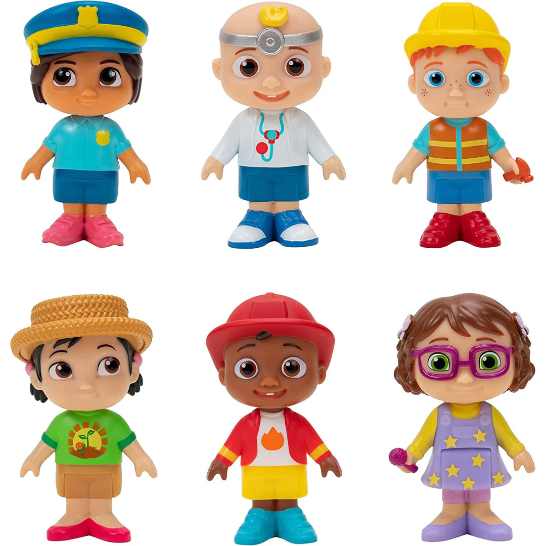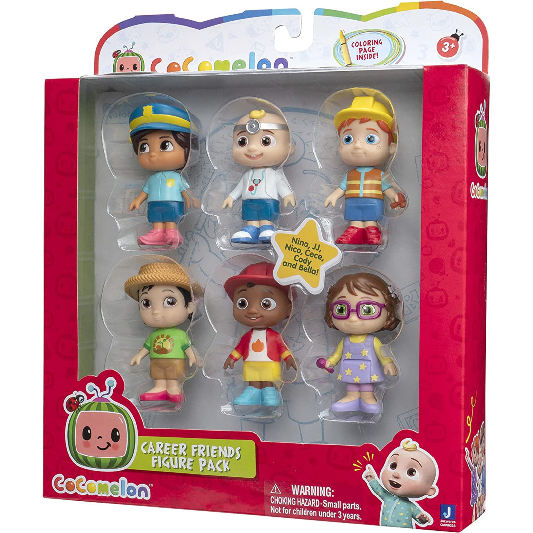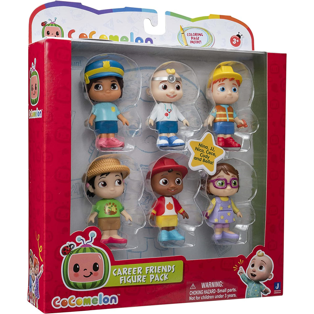 When we are old and wise, we will be able to become whatever we set our minds to! Career Day is something that JJ and his pals are looking forward to. This Career Friends 6 Figure Pack was inspired by CoComelon and features Doctor JJ, Firefighter Cody, Police Officer Nina, Farmer CeCe, Construction Nico, and Singer Bella. Also included is Nico. Your child will have a great time playing with and singing along to the characters that are both on the programme and in the toys they have in their hands. While you enjoy playing with this entertaining figure set, sing along to the "Jobs and Careers Song"! This CoComelon Career Friends 6 Figure Pack is the ideal present for the die-hard fan of the franchise who lives in your house.