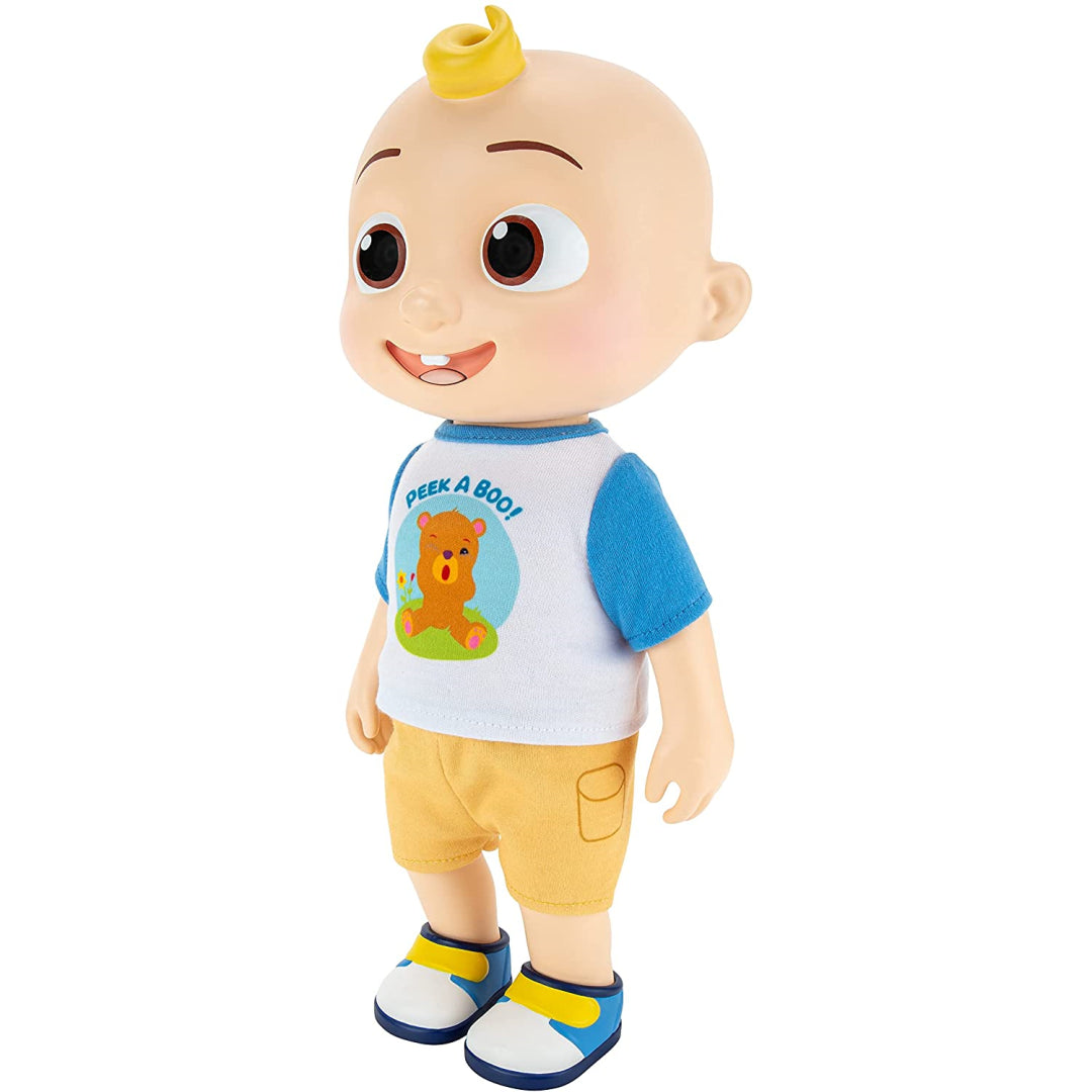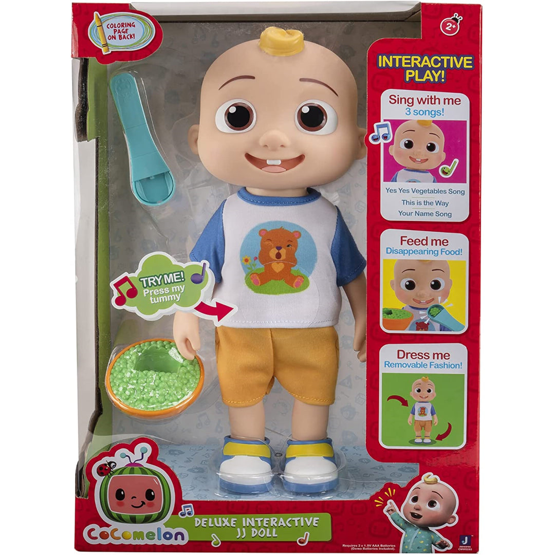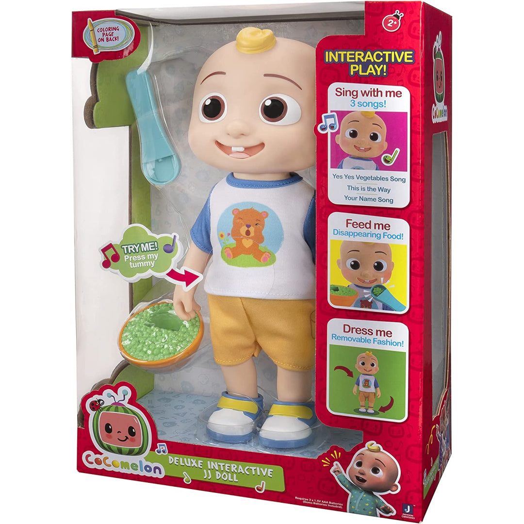 The Interactive Deluxe JJ Dolll will bring the CoComelon nursery songs to life. This sweet 12 "JJ, a well-known character from the instructive CoComelon YouTube series, served as inspiration for the doll! Prepare JJ for the day by putting on his detachable t-shirt and shorts. Feed JJ using the spoon that, when placed into the bowl, adjusts the retractable peas. This 12 " doll also includes noises and words for friends! All you have to do to get JJ to start singing "Yes, Yes Vegetables" is pinch his stomach. With their favourite CoComelon companion at their side, your youngster will adore snuggling!