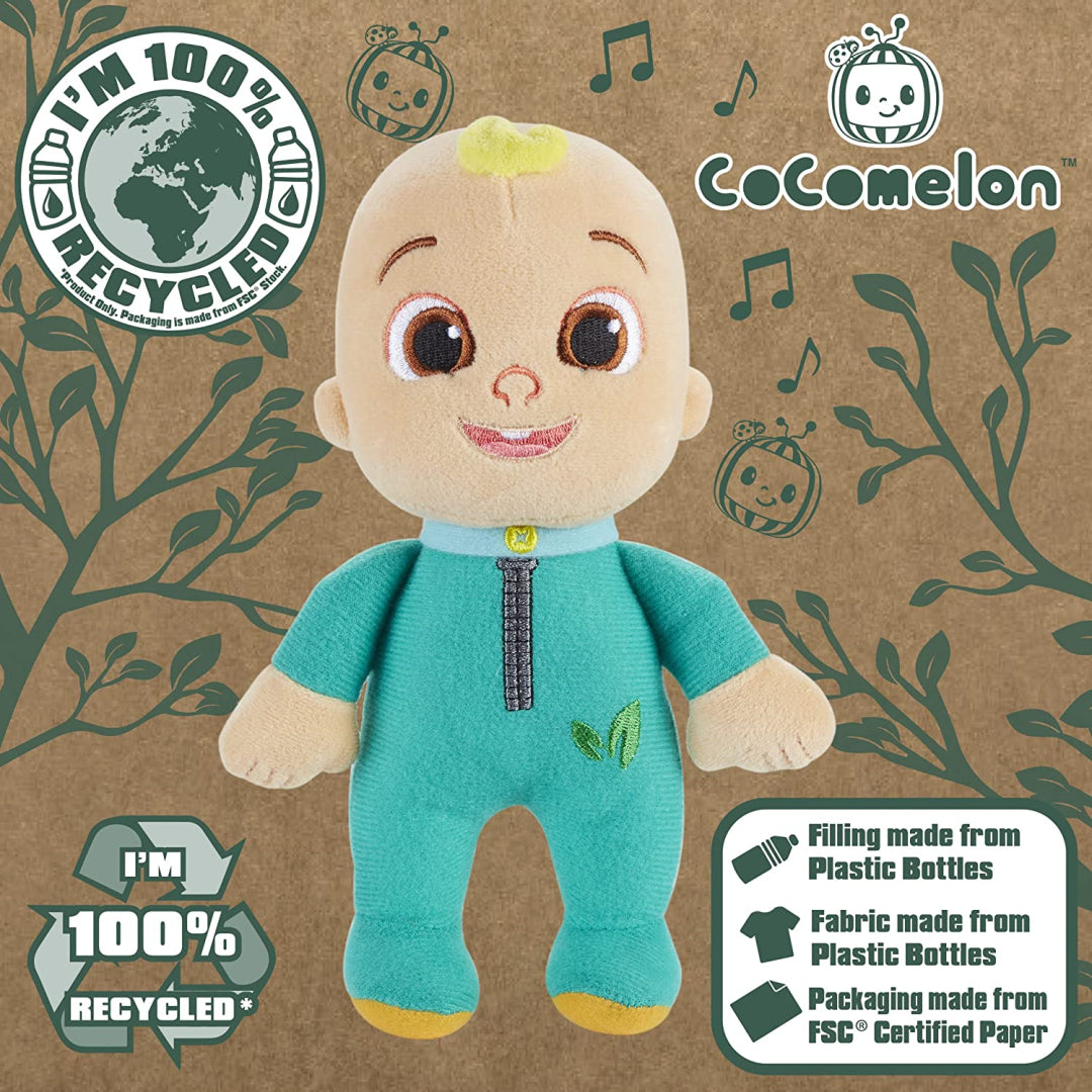 The Eco line of plush toys is known for its high level of quality and their use of only recycled materials in their construction. These eco-friendly toys were designed with younger Cocomelon devotees in mind while maintaining faithful to the brand's original aesthetic. Their goal is to deliver ultra-plush enjoyment to playing without negatively impacting the environment. In addition, the packaging is manufactured from sustainably sourced material that has been verified by the FSC. These adorable and cuddly plush toys have a height of 8 inches and are the ideal size to bring along with you wherever you go.