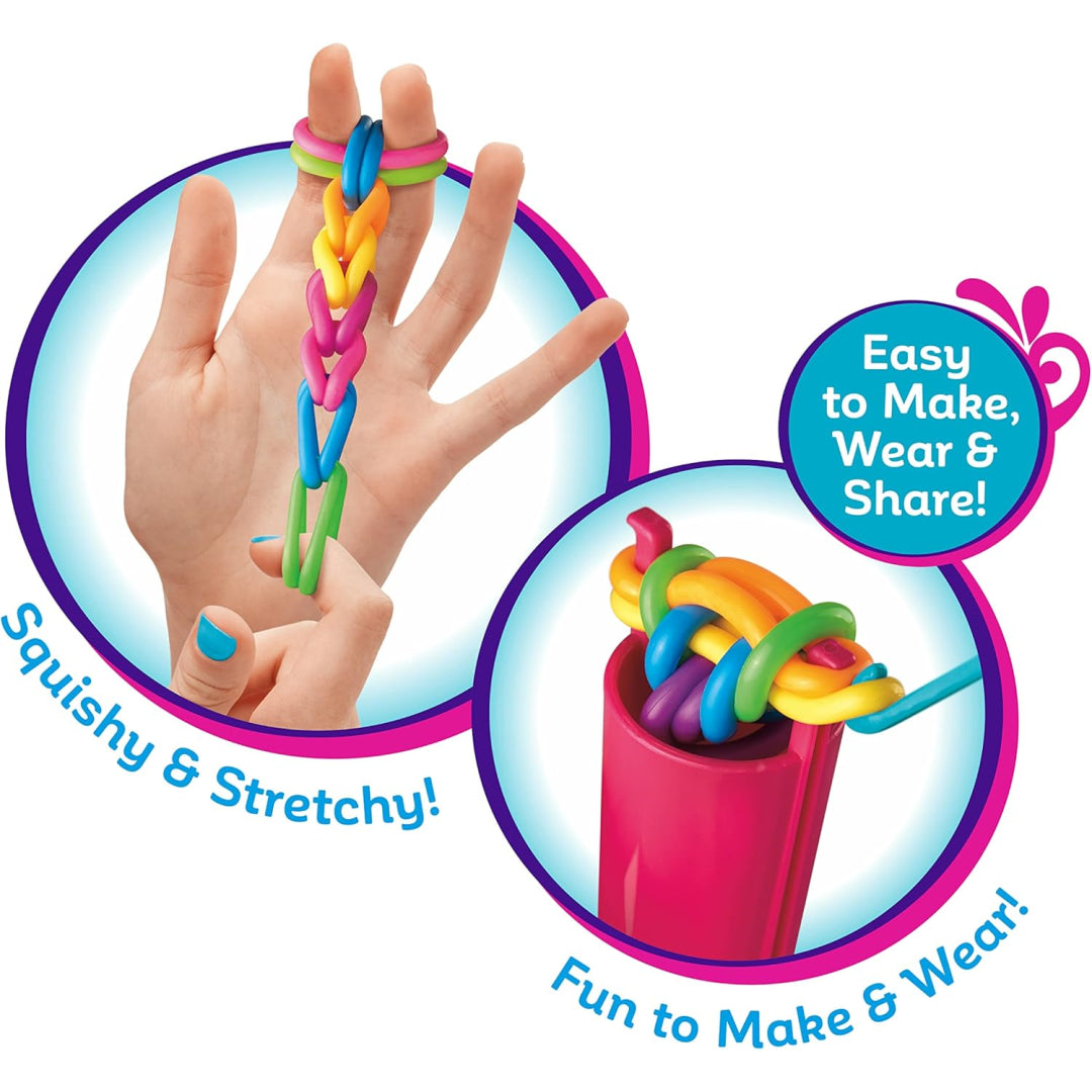 Choose between two trendy designs - the single loop fishtail or double loop fishtail - and mix and match rainbow colours to create unique combinations. Each bracelet is delightfully squishy and flexible, making them super fun to wear and play with. The kit comes with clear instructions, so your children can dive straight into crafting their own wearable masterpieces.